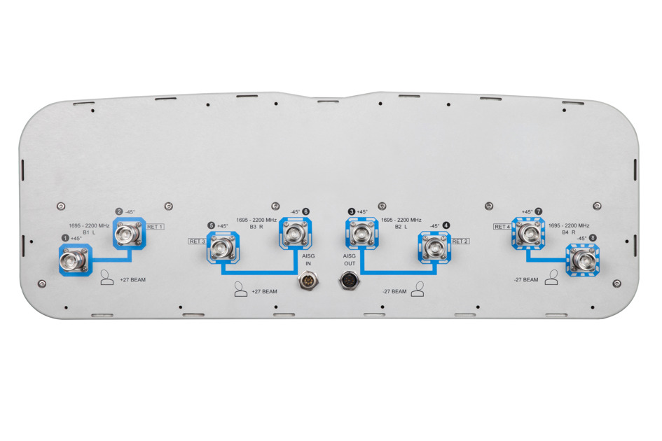 8-port multibeam antenna, 8x 1695–2200 MHz, 4x 38° HPBW, 4x RET