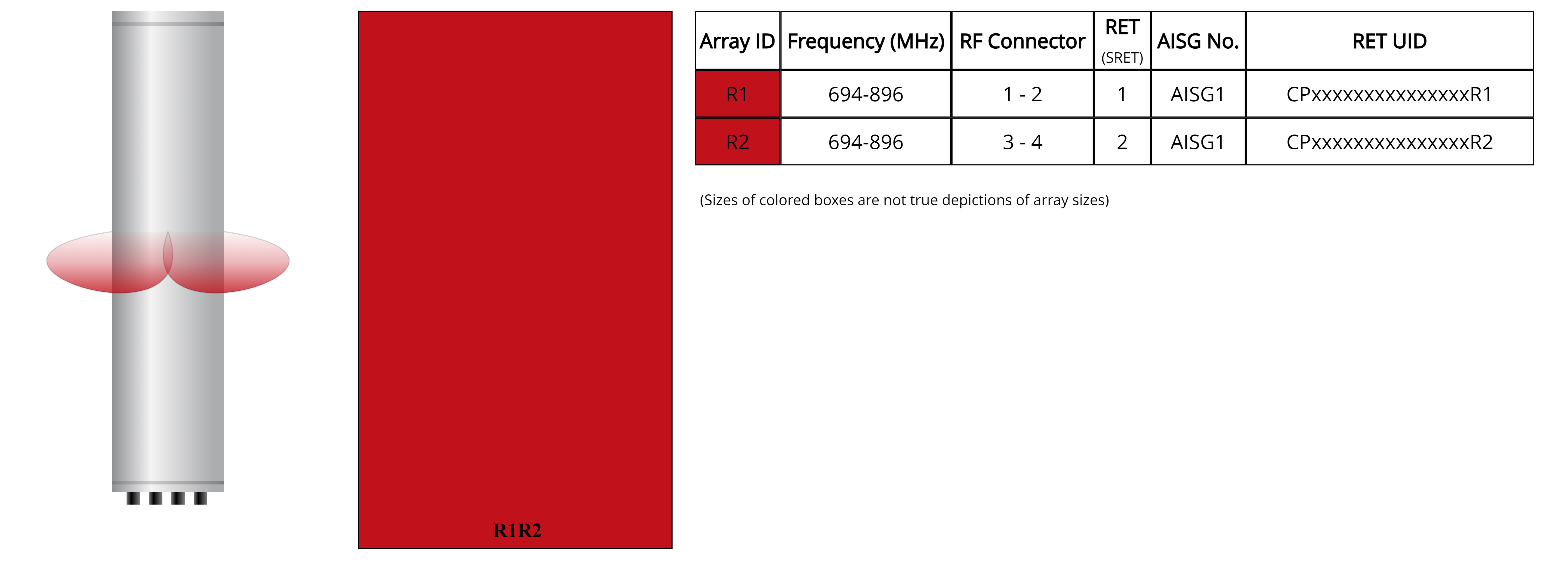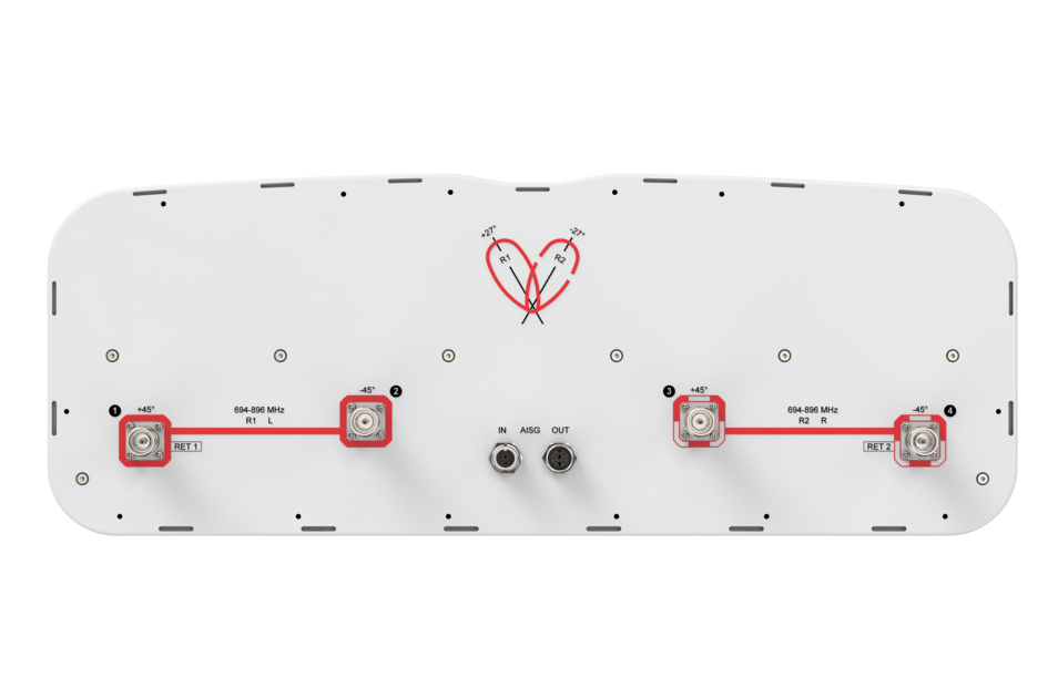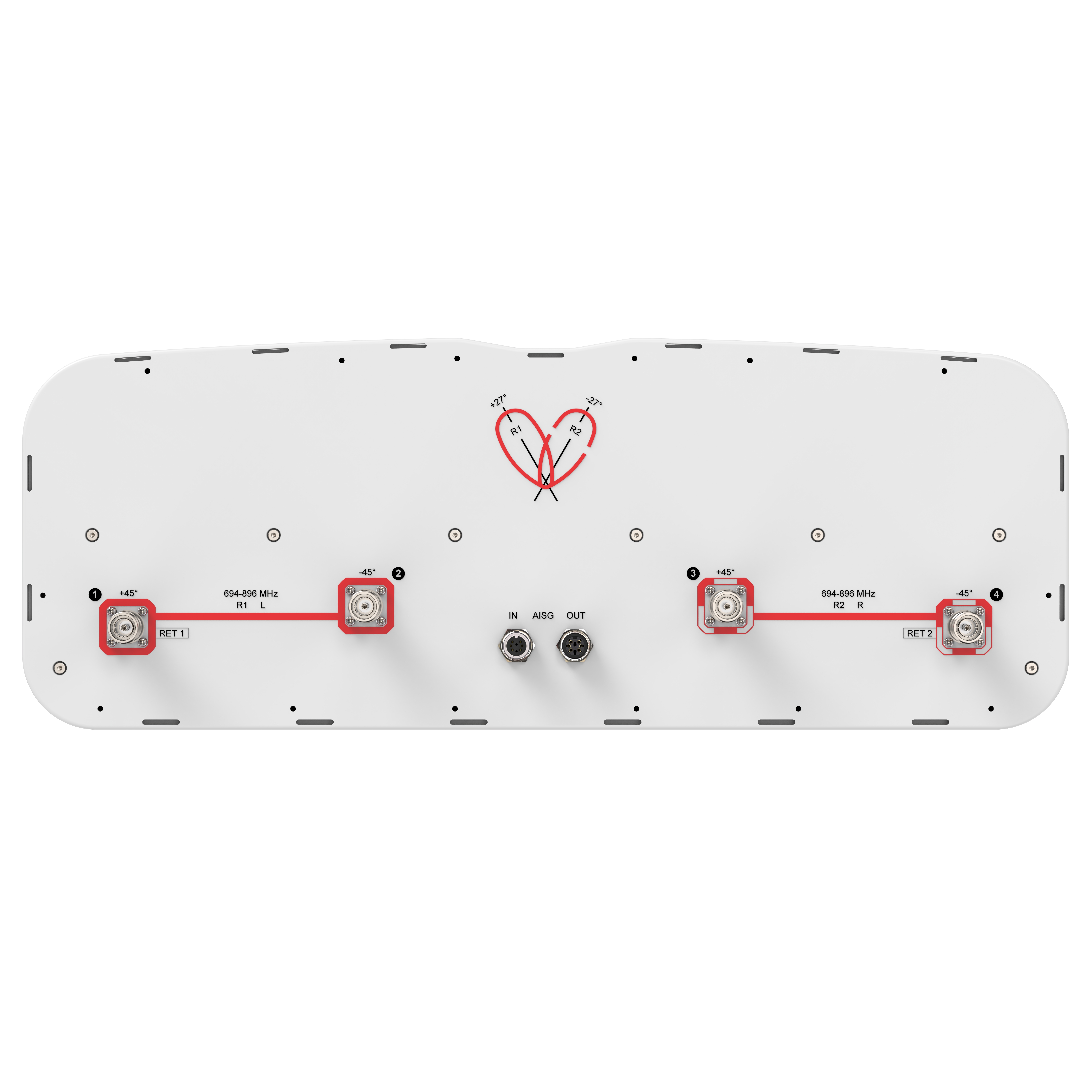 • Integrated Internal Remote Electrical Tilt (RET), with independent control of electrical tilt on both beams