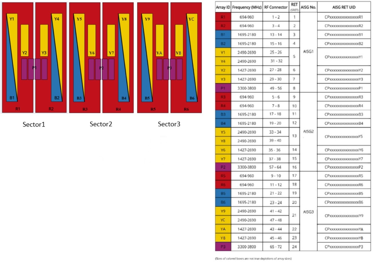 Internal RET High band (3) | Low band (6) | Mid band (15)