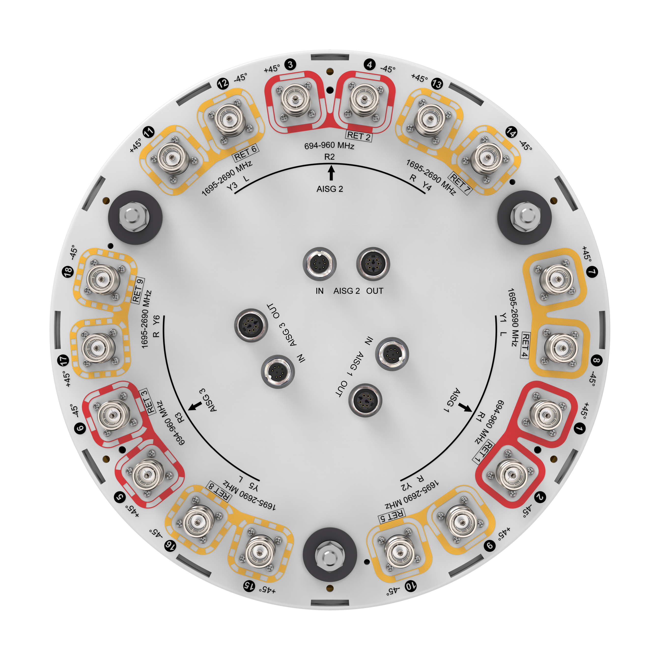 - Each sector offers one low band DualPol® array and two mid band DualPol® arrays with independent Electrical Tilt