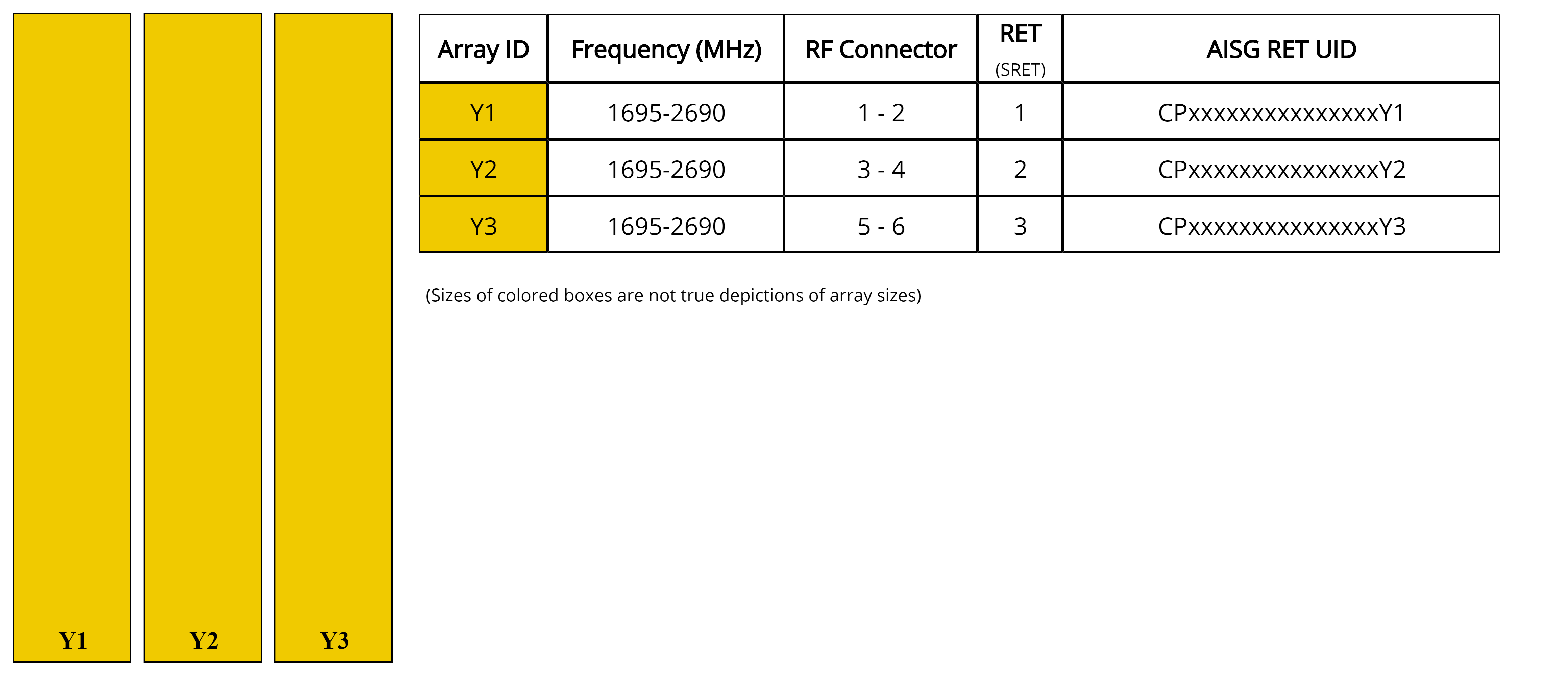 RET Interface 2x 8 pin connector as per IEC 60130-9 Daisy chain in: Male / Daisy chain out: Female Pin3: RS485A(AISG_B), Pin5: RS485B(AISG_A), Pin6: DC 10~30V, Pin7: DC_ Return
