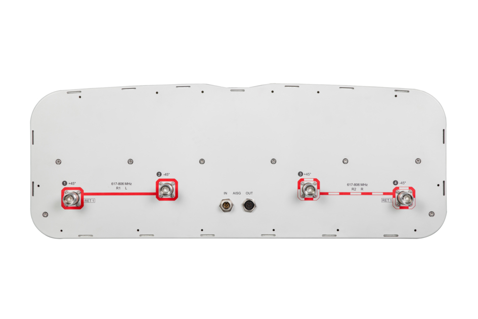 4-port sector antenna, 4x 617–806 MHz, 65° HPBW, 1x RET, 600MHz-Ready Antenna Technology