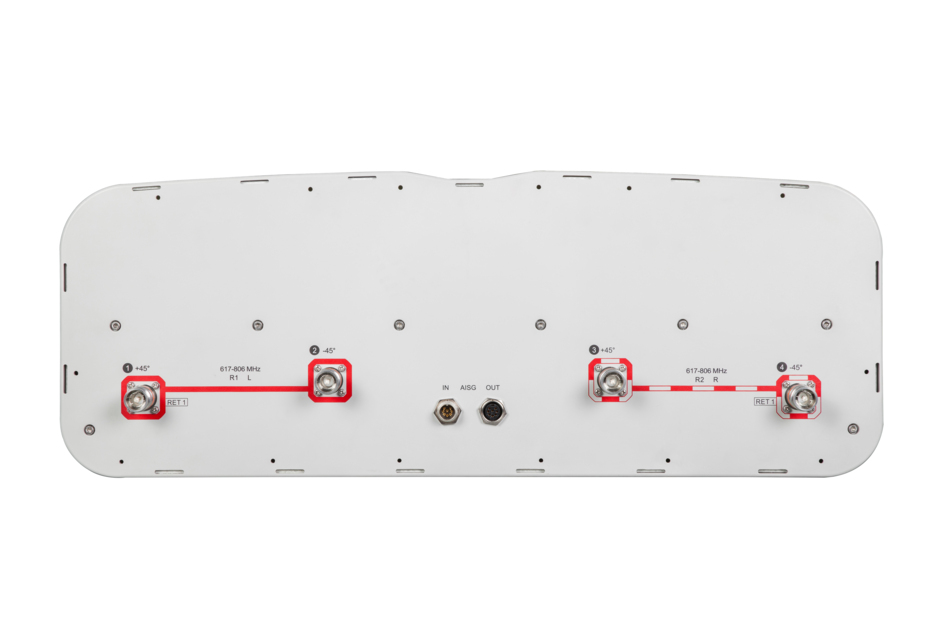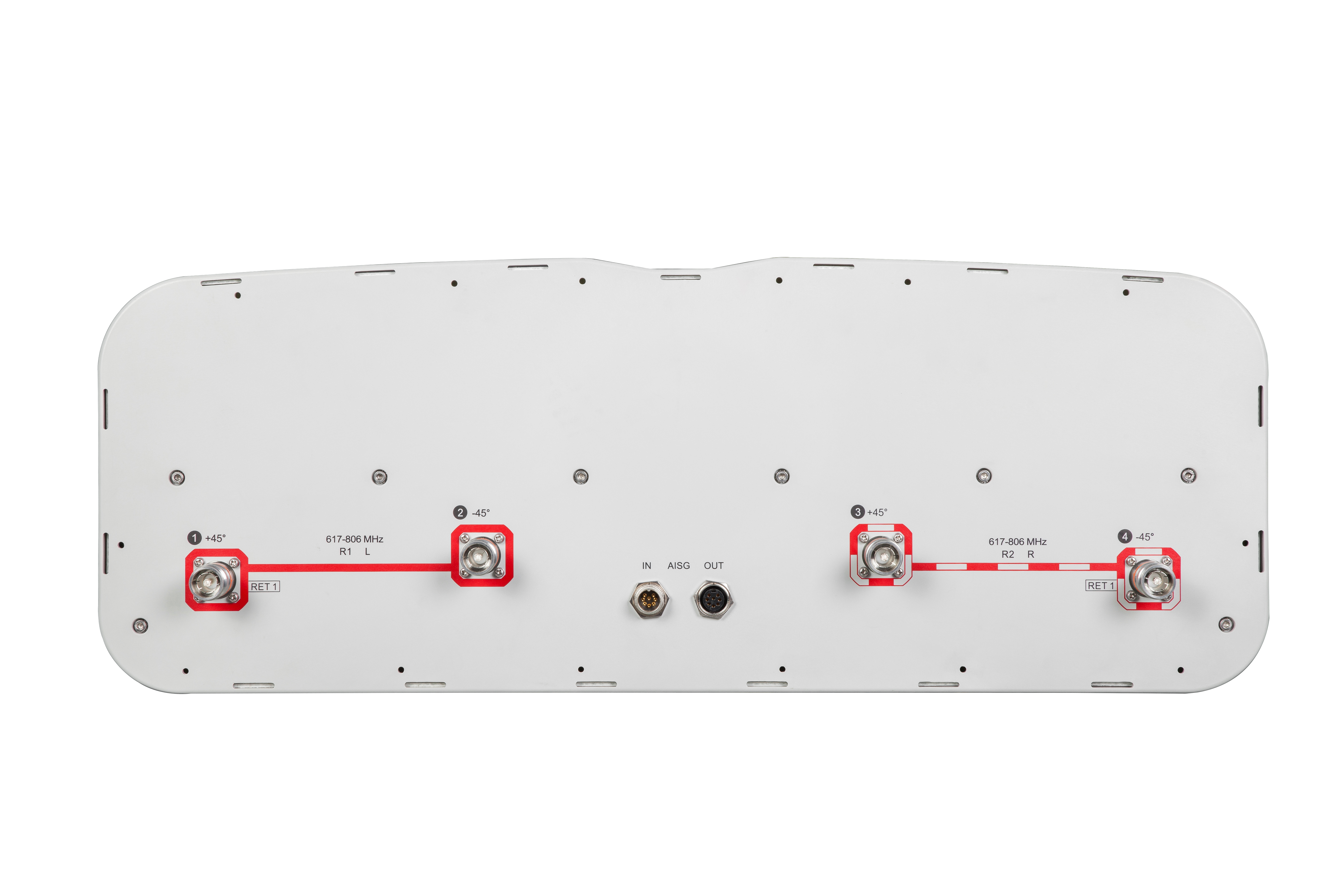 4-port sector antenna, 4x 617–806 MHz, 65° HPBW, 1x RET, 600MHz-Ready Antenna Technology