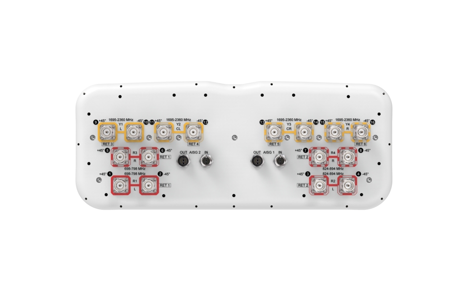 • Features broadband Low Band (698-894 MHz) and High Band (1695-2360 MHz) arrays for 4T4R (4X MIMO) capability for 700 and 850 MHz, AWS, PCS and WCS applications