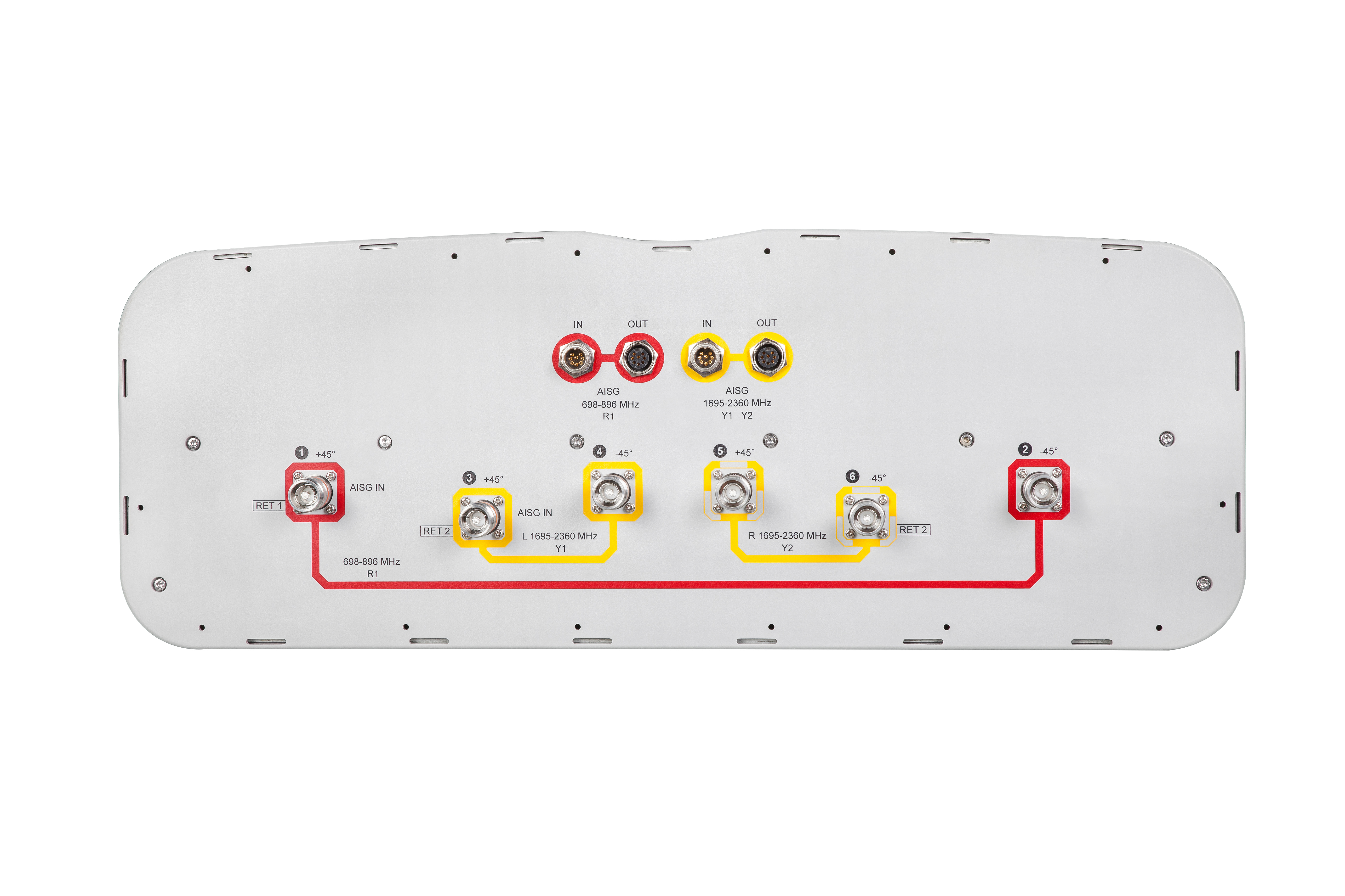 • Separate RS-485 RET input/output for low and high band