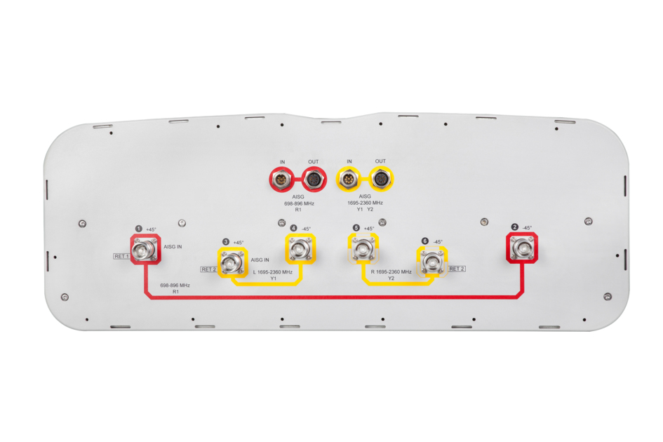 • One LB RET and one HB RET. Both high bands are controlled by one RET to ensure same tilt level for 4x Rx or 4x MIMO