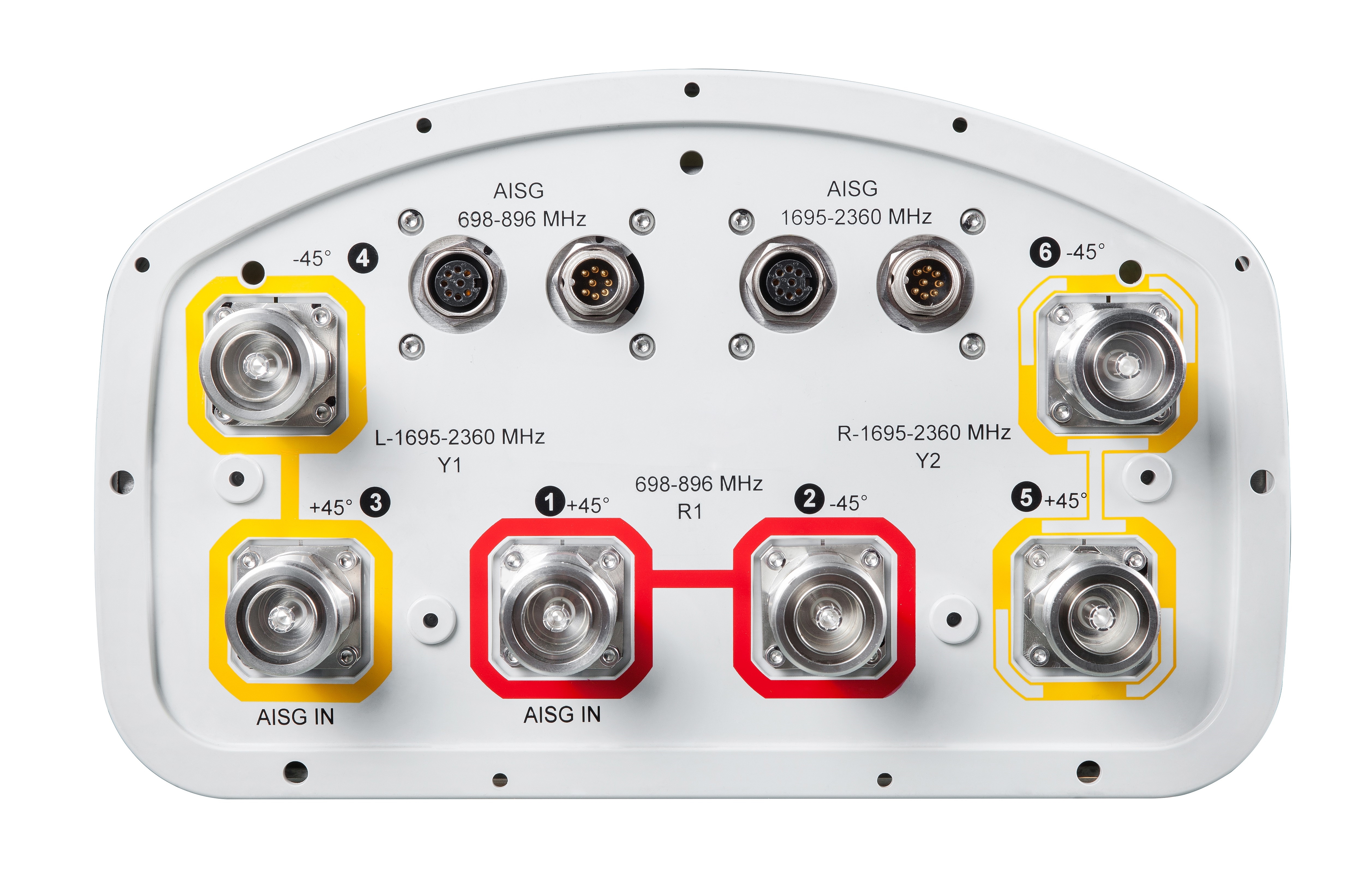 - One RET for low band and one RET for both high bands to ensure same tilt level for 4x Rx or 4x MIMO