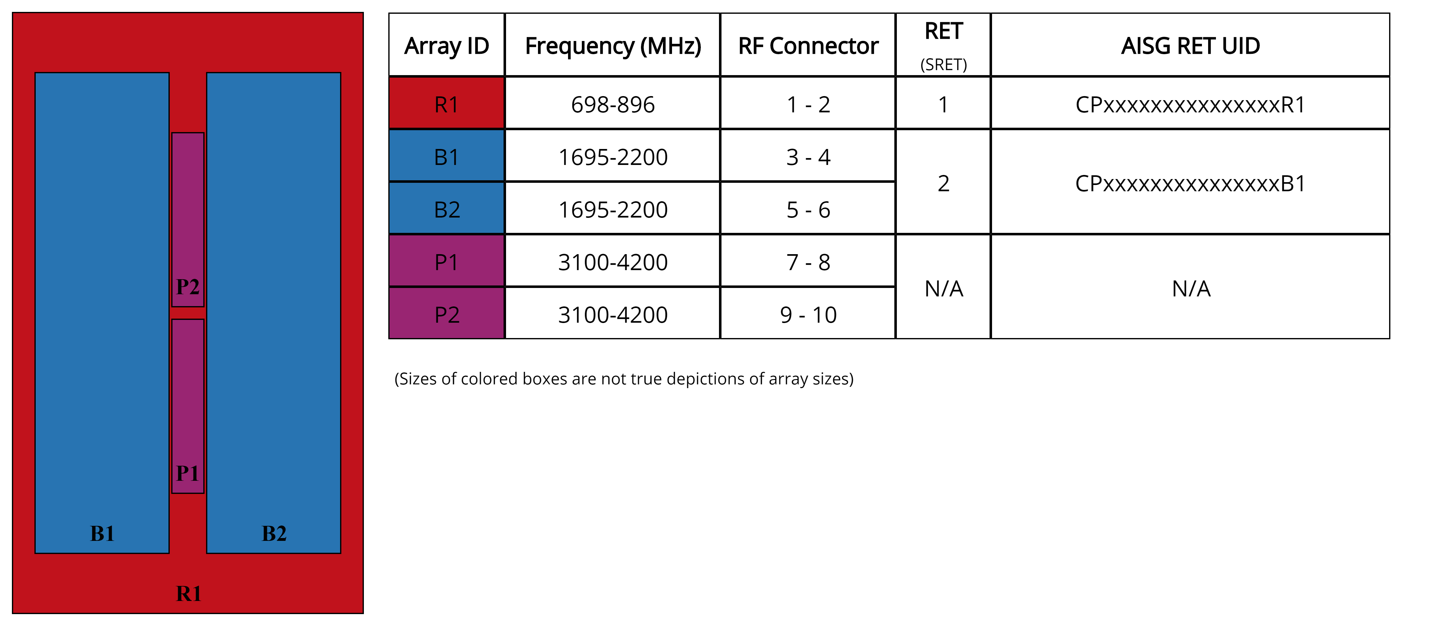 Operating Frequency Band 698 – 896 MHz | 1695 – 2200 MHz | 3100 – 4200 MHz