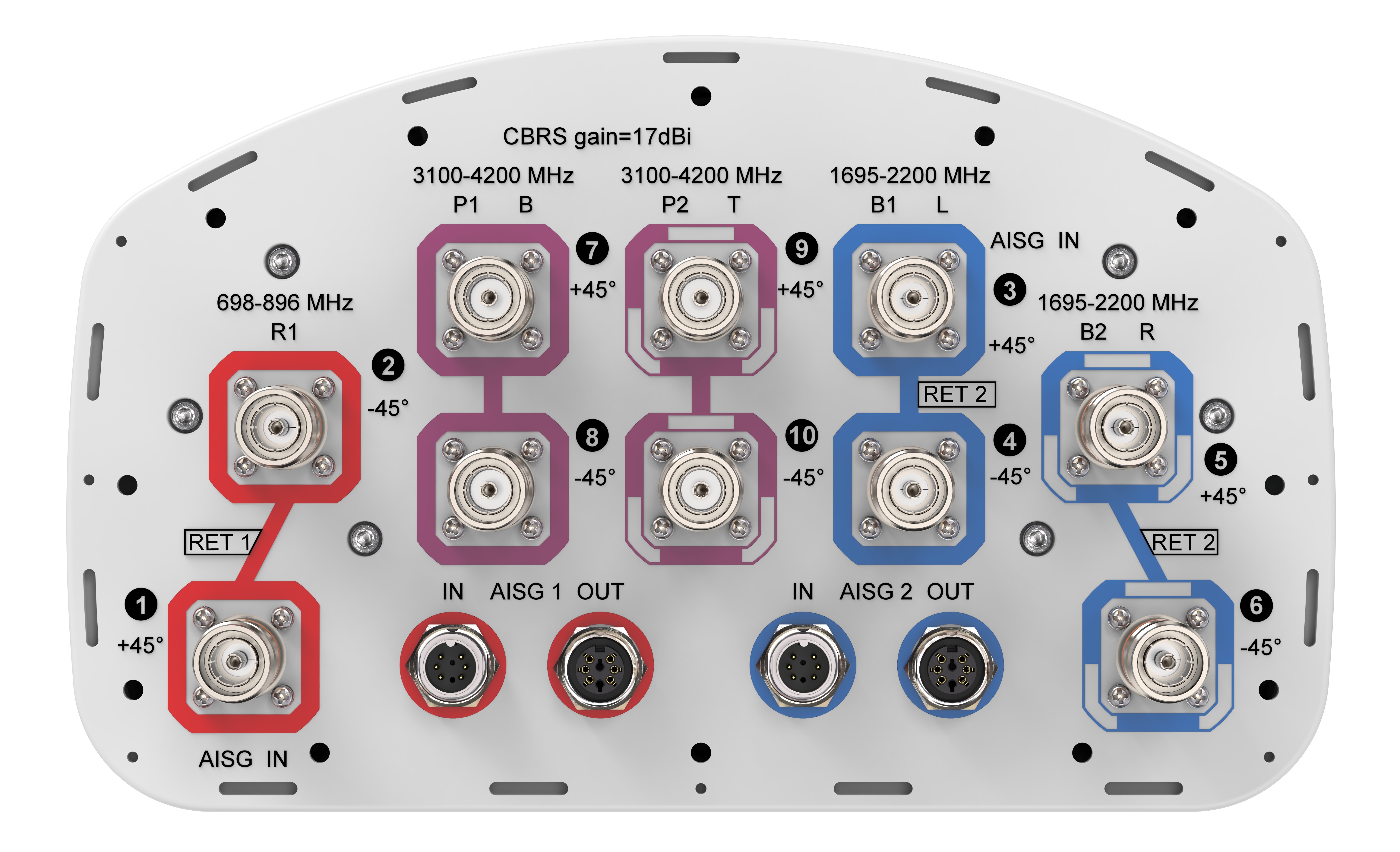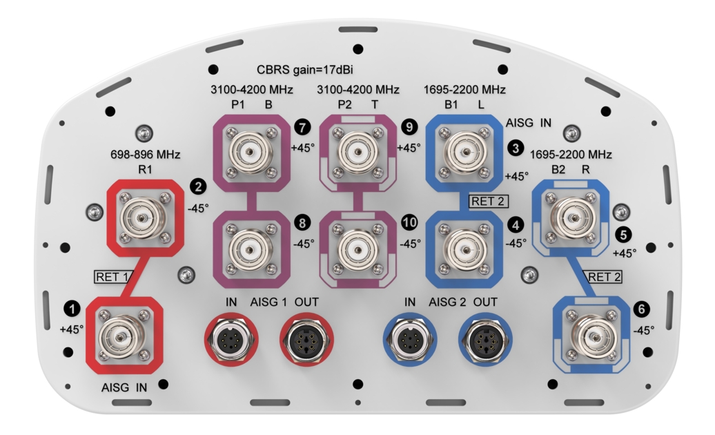 - One LB RET and one HB RET. Both high bands are controlled by one RET to ensure same tilt level for 4x MIMO
