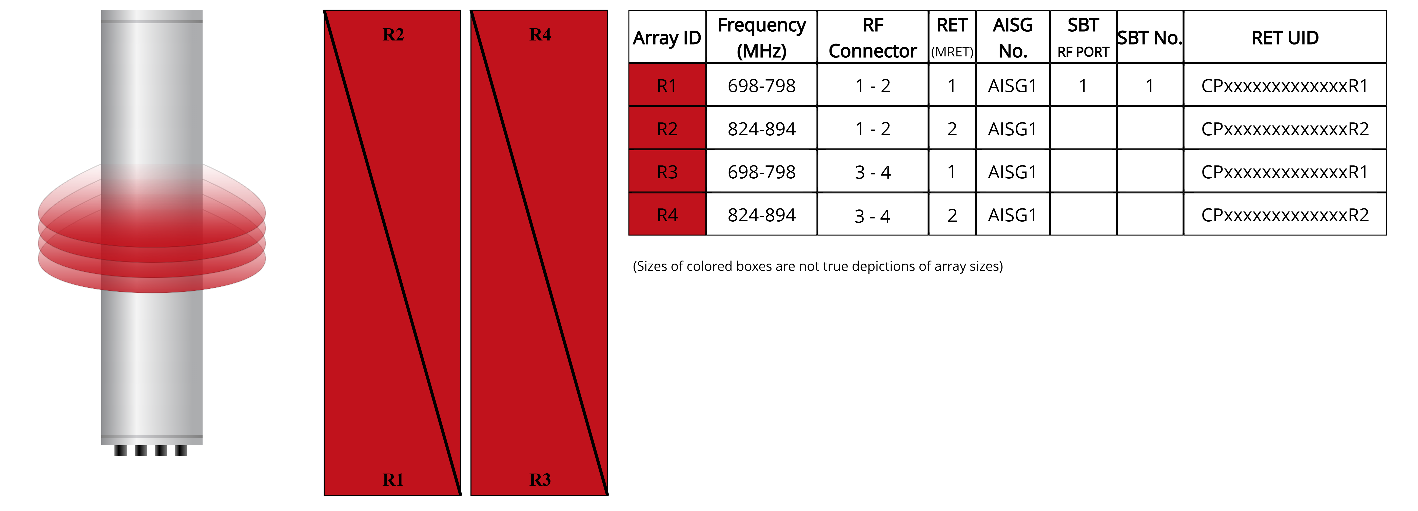 - The low band array is internally diplexed for an independent tilt at 700 MHz and 850 MHz