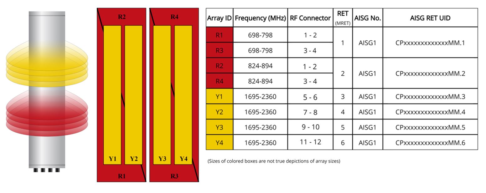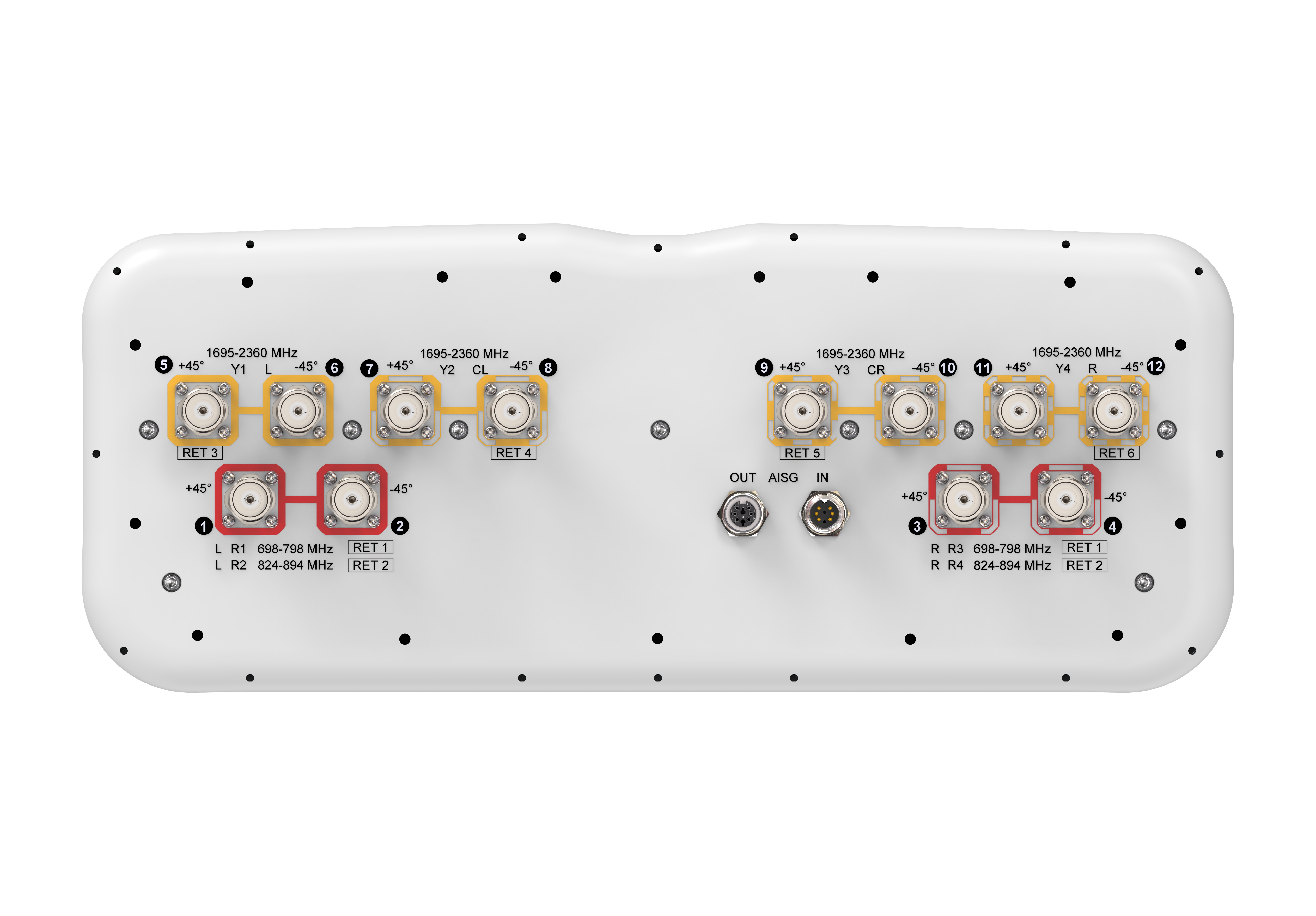 - Features broadband Low Band (698-894 MHz) and High Band (1695-2360 MHz) arrays for 4T4R (4X MIMO) capability for 700 and 850 MHz, AWS, PCS and WCS applications
