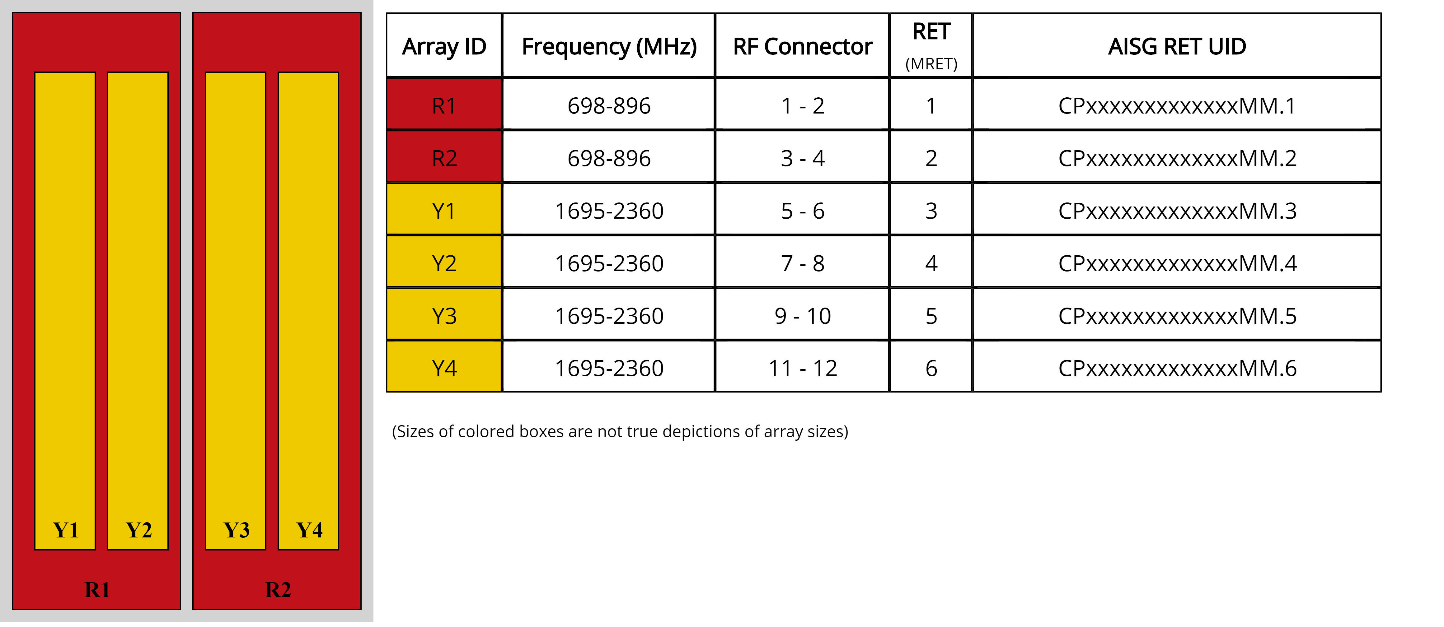 - Array configuration provides capability for 4T4R (4x MIMO) on Low band and Mid band