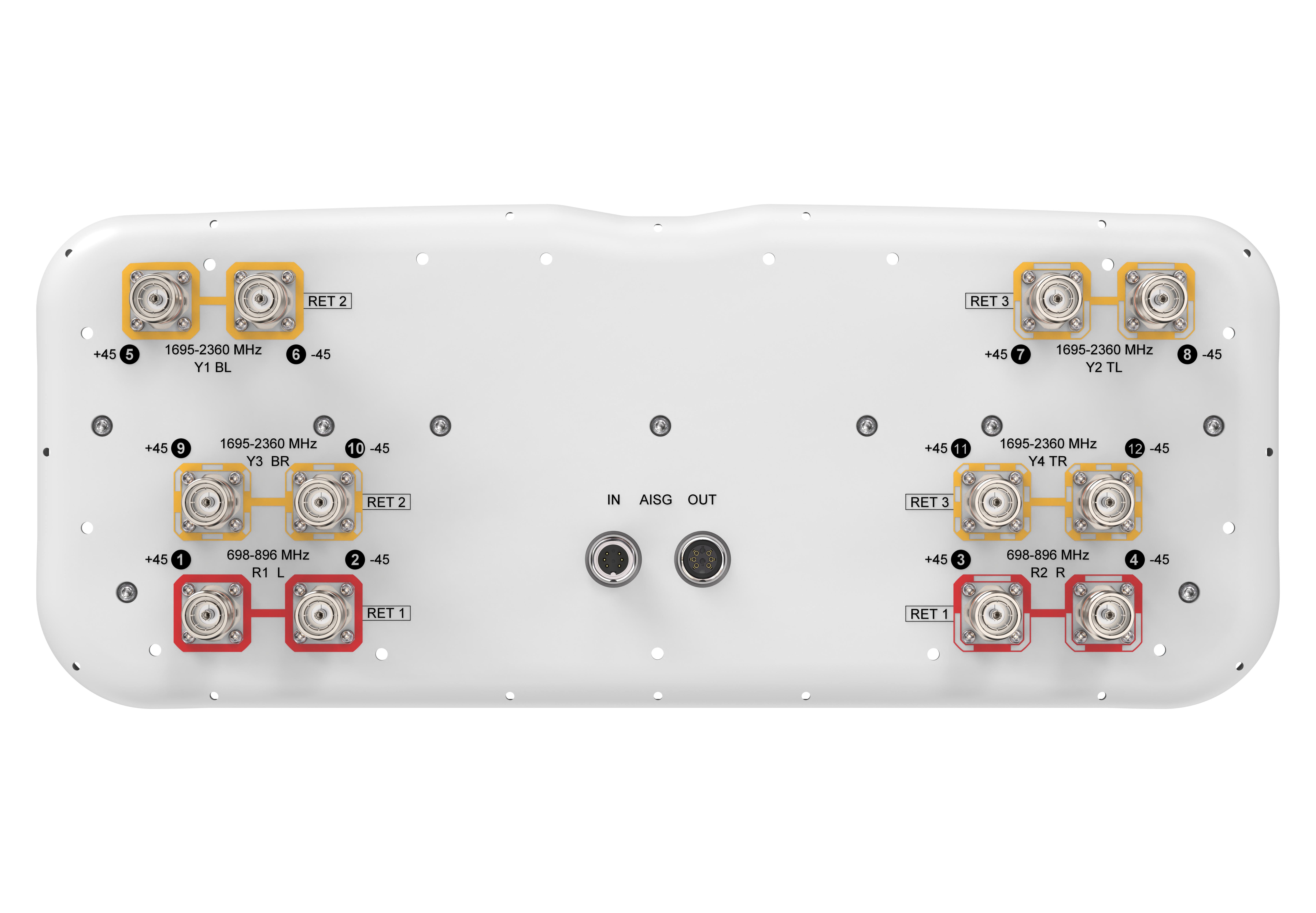 Internal RET Low band (1) | Mid band (2)