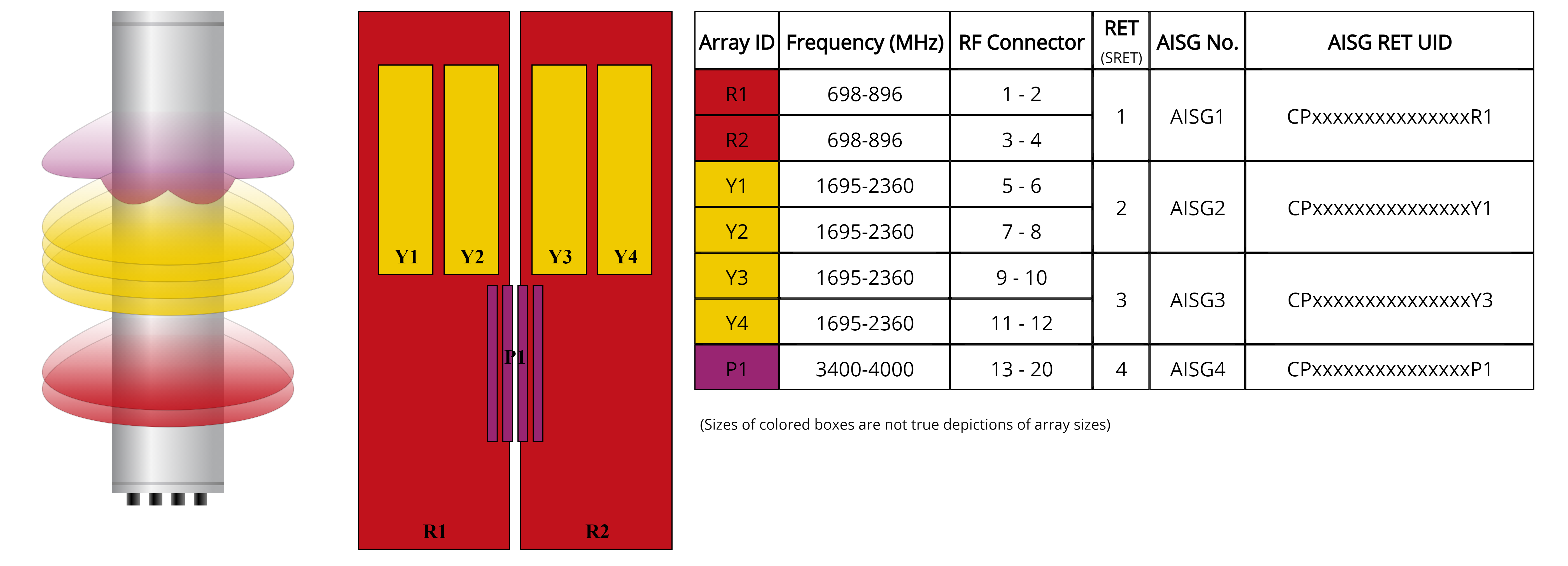 | Internal RET | High band (1) | Low band (1) | Mid band (2) |