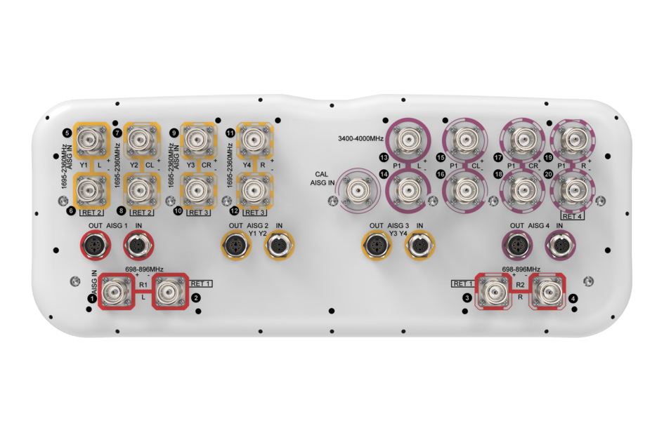 20 Port Sector Antenna & Beamforming , 4x698-896 MHz, 8x1695-2360 MHz, 65° HPBW and 8x3400-3550/3700-4000 MHz Beamformer, 4XRET