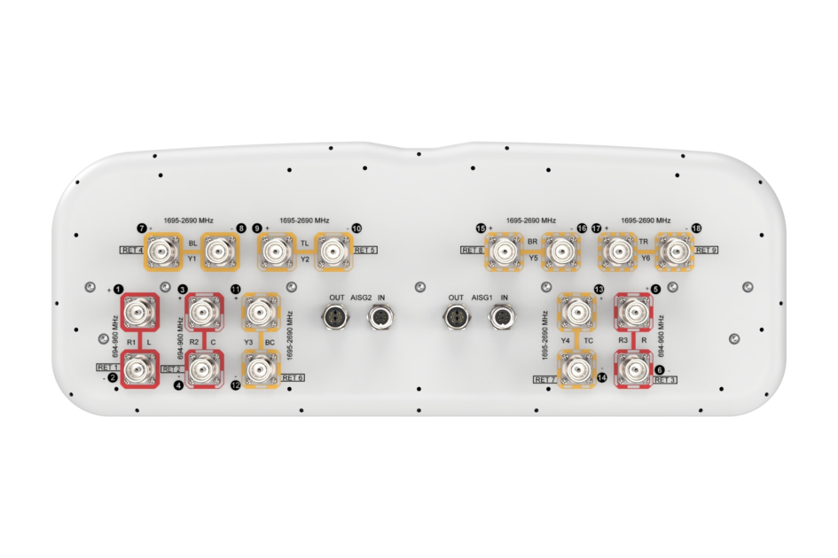 - Supports re-configurable antenna sharing capability enabling control of the internal RET system using up to two separate RET compatible OEM radios (Supports_r)