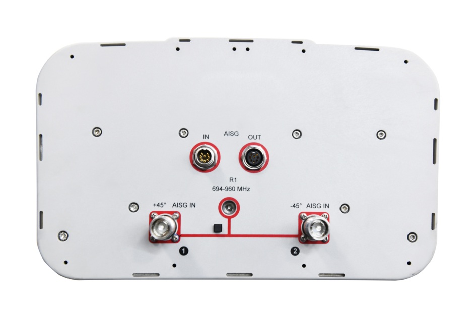 2-port sector antenna, 2x 694–960 MHz, 65° HPBW, 1x RET with manual override. Internal Bias-Tee on both RF ports.