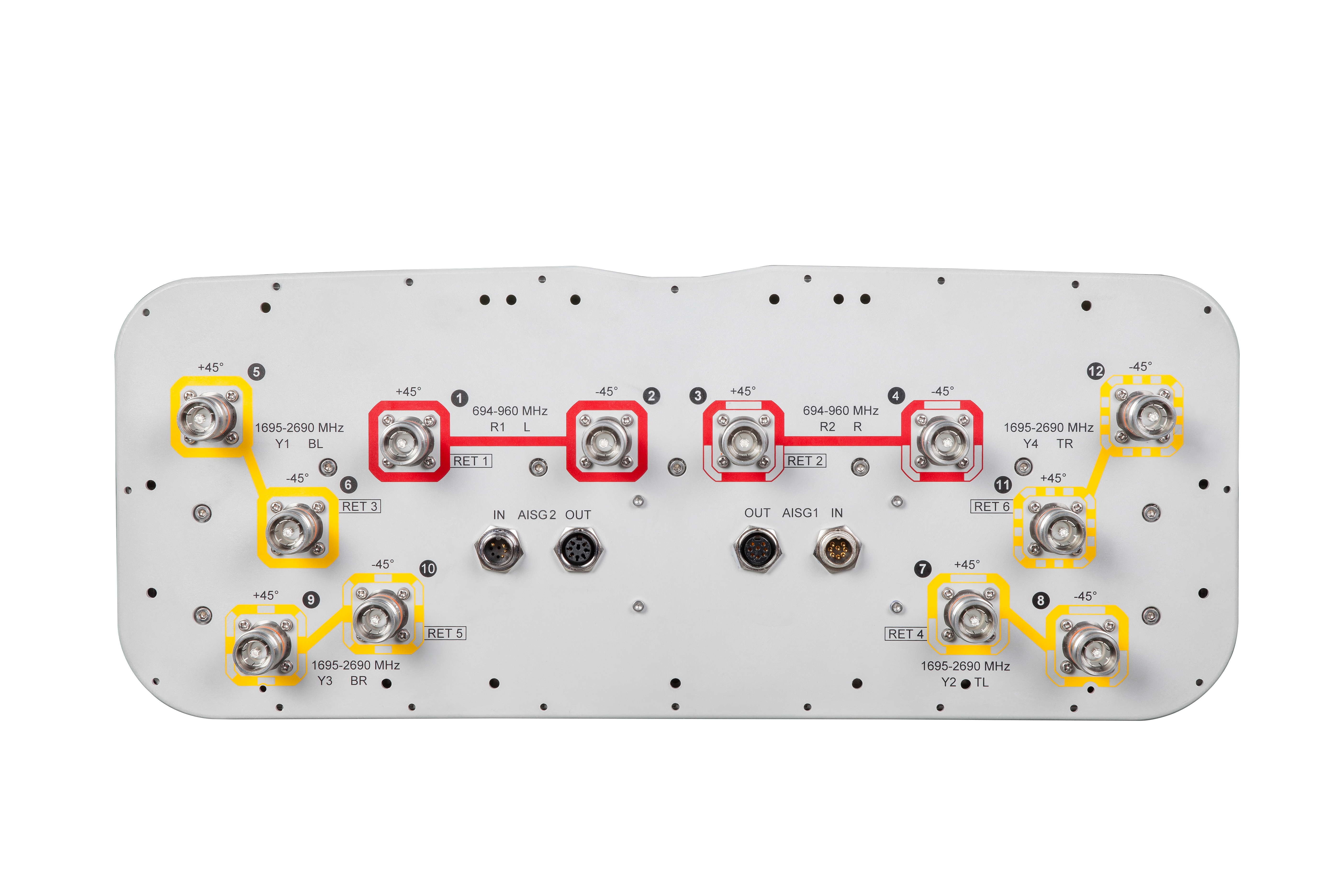 • Supports re-configurable antenna sharing capability enabling control of the internal RET system using up to two separate RET compatible OEM radios (Supports_r)