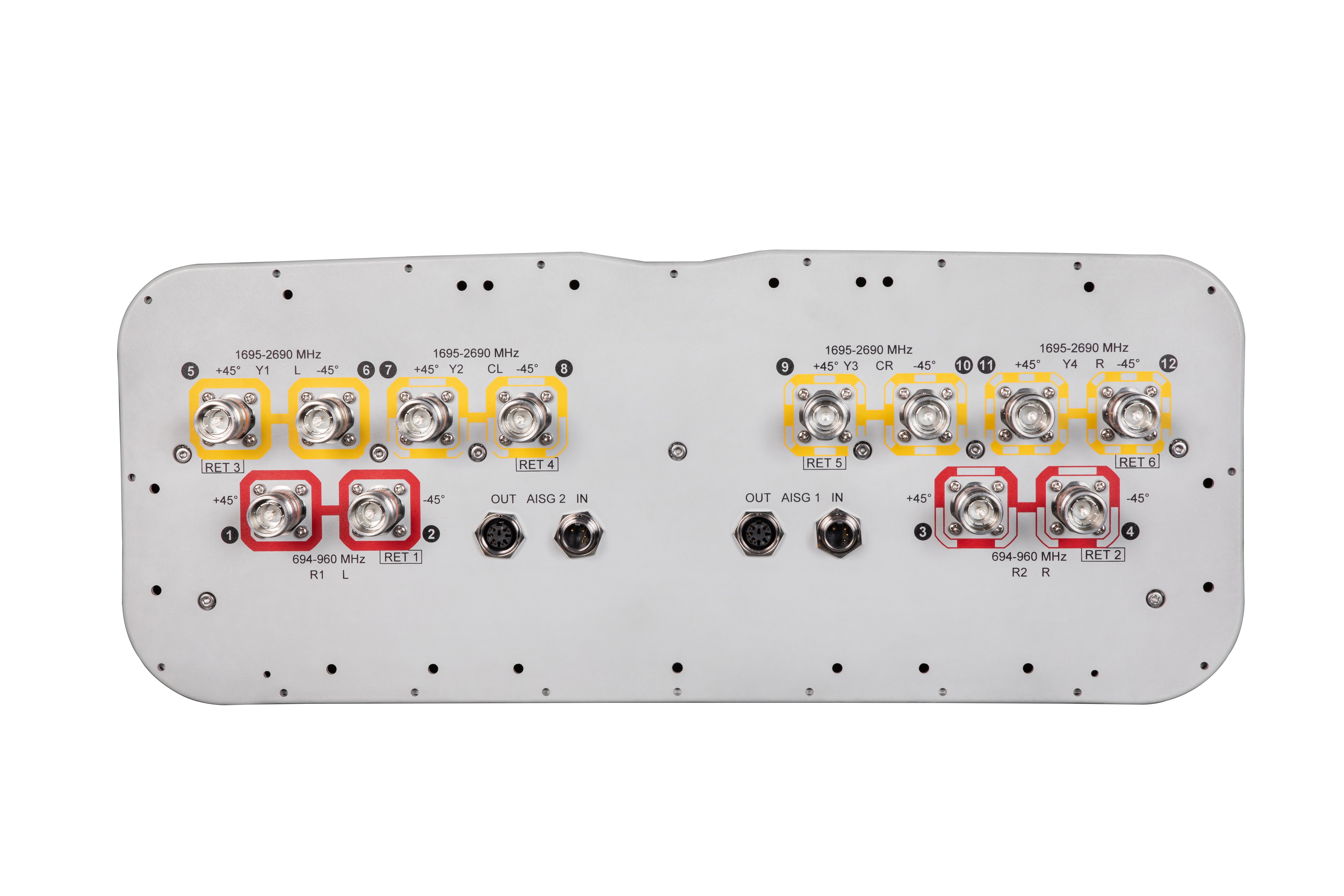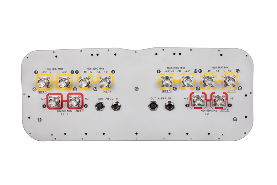 12-port sector antenna, 4x 694–960 and 8x 1695–2690 MHz, 85° HPBW, 6x RETs