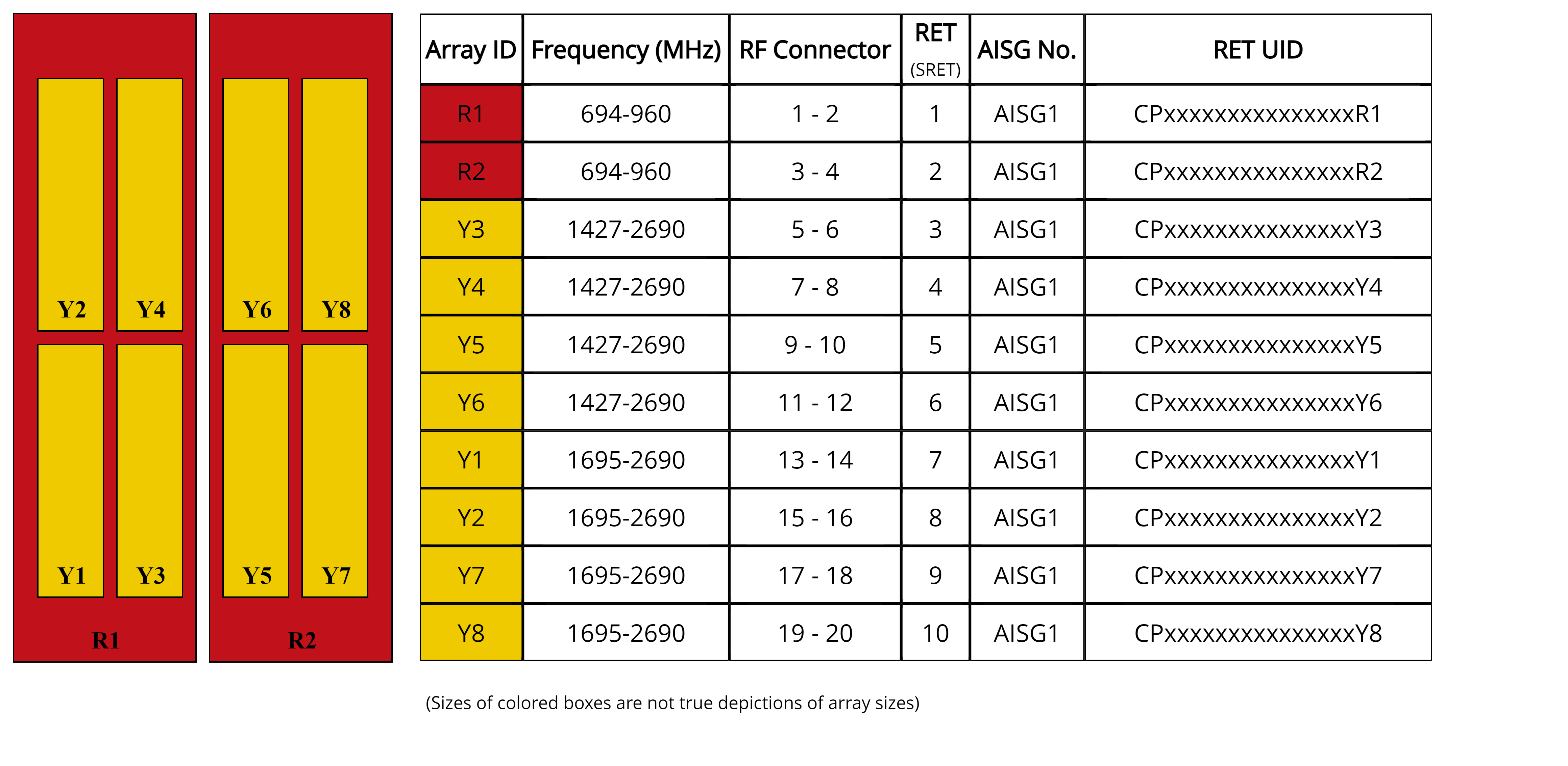 • All Internal RET actuators are connected in "Cascaded SRET" configuration
