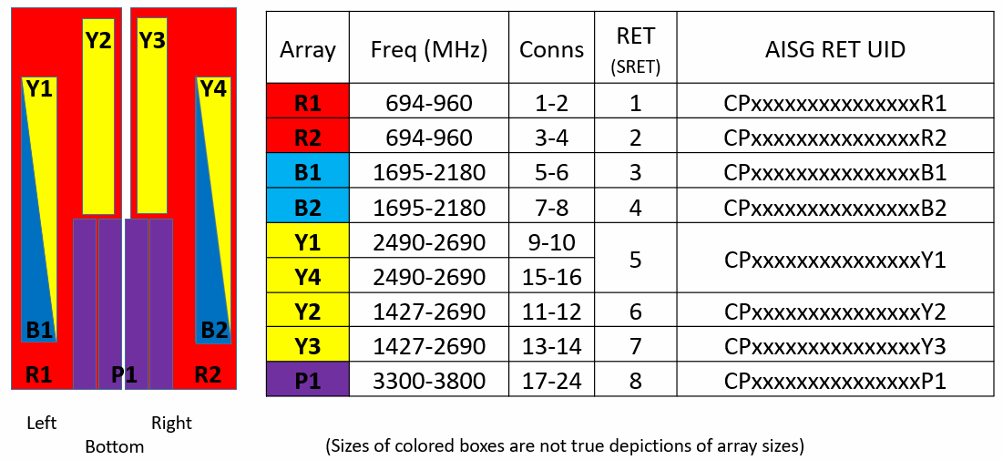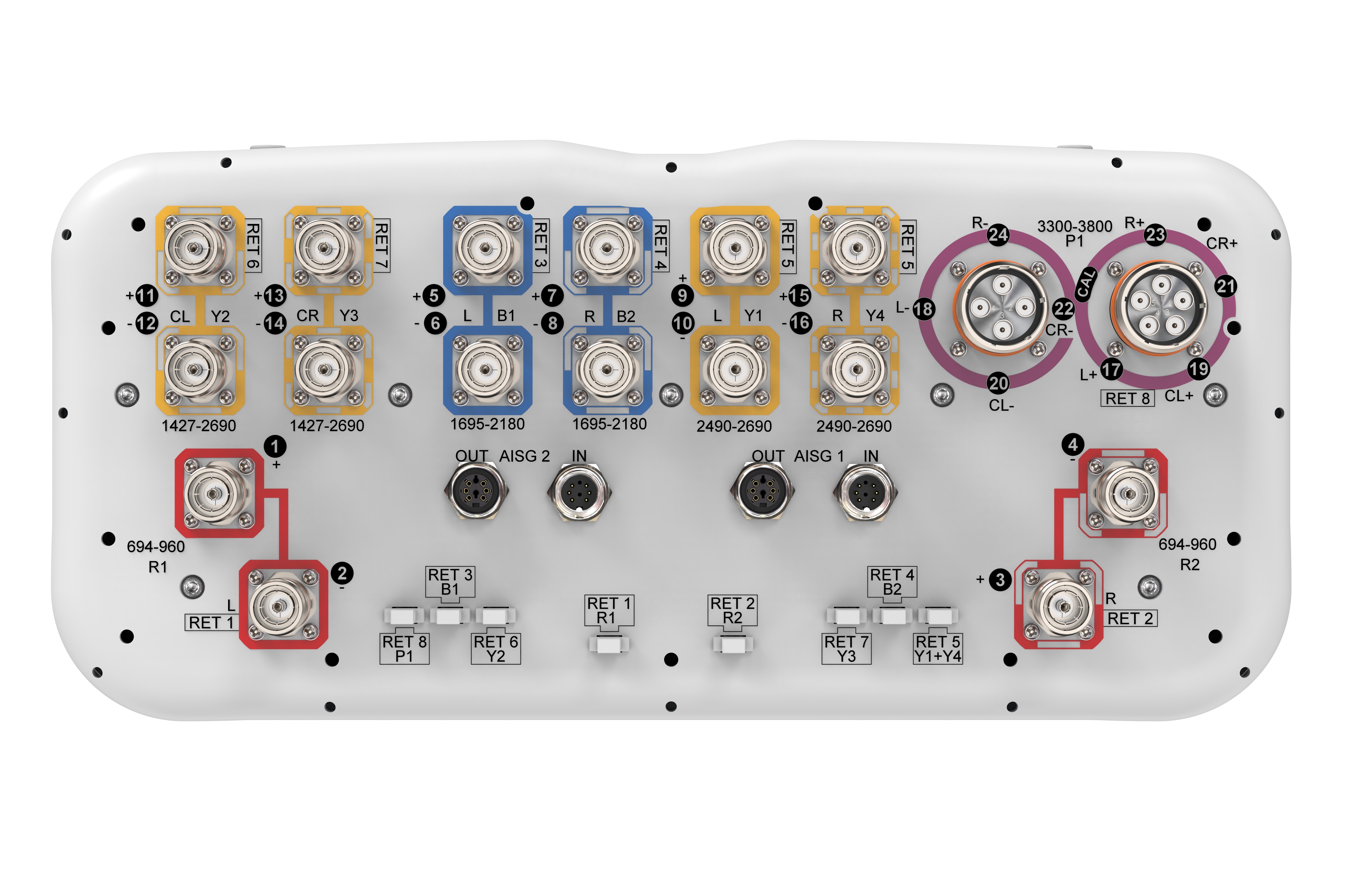• Includes eight Internal RET’s. All 2490-2690MHz (Y1&Y4) ports share common RET