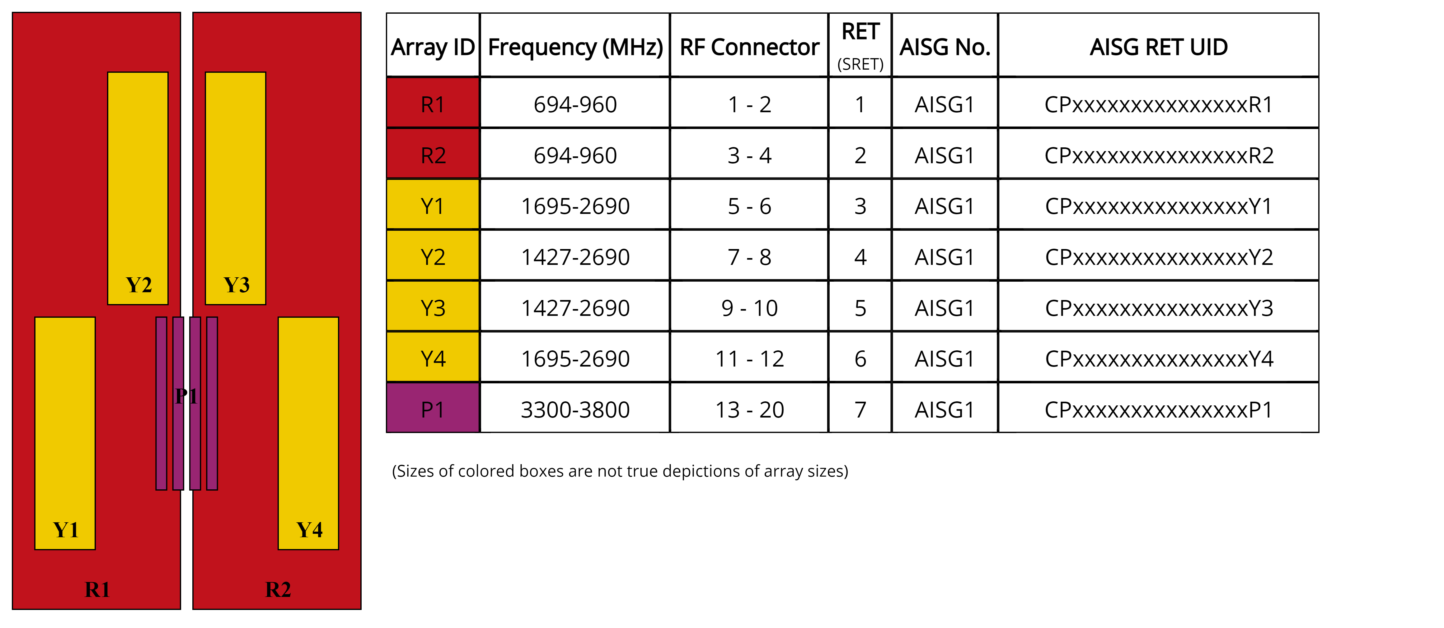 Internal RET High band (1) | Low band (2) | Mid band (4)