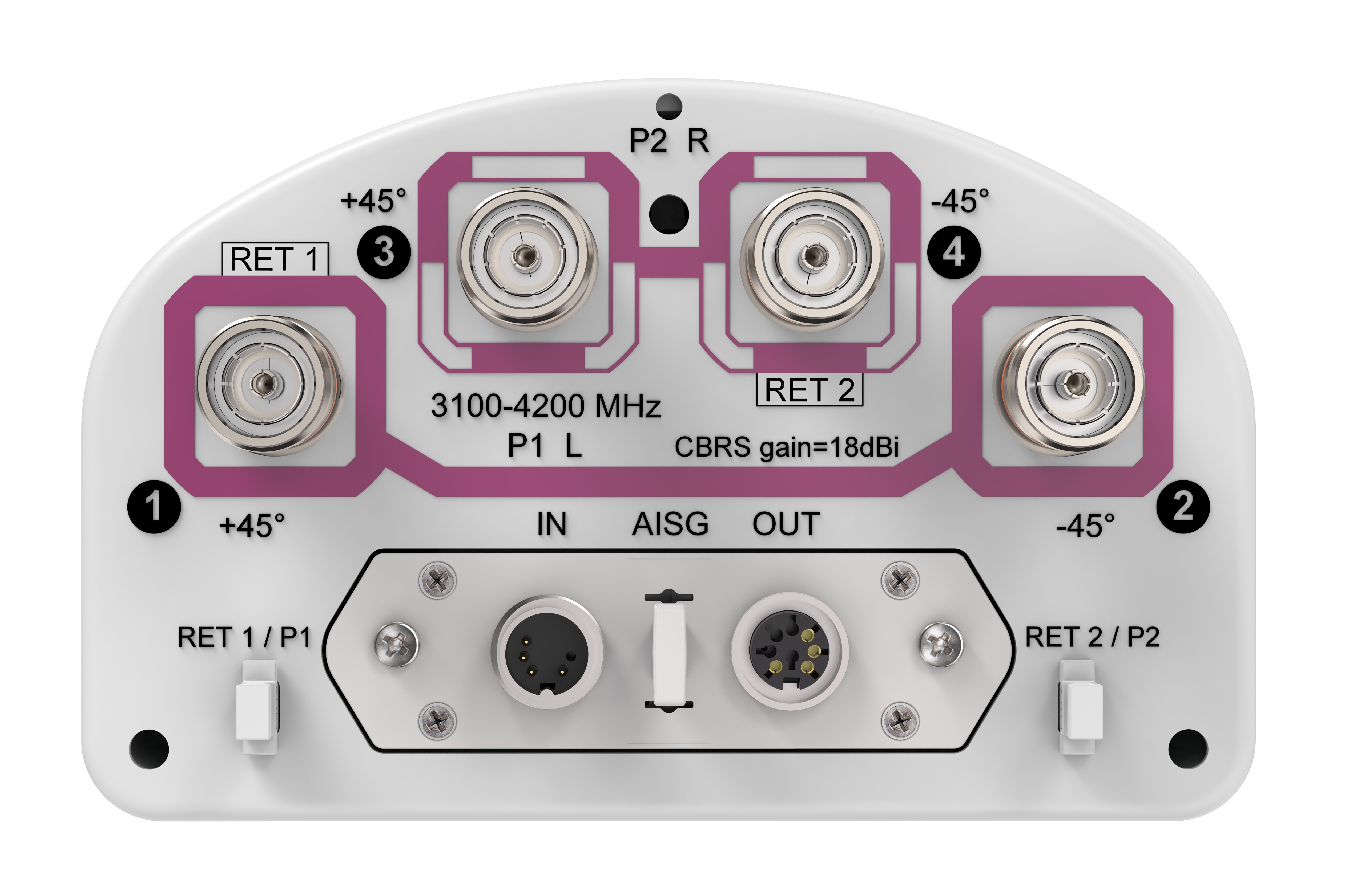 4-port sector antenna, 4x 3100-4200 MHz, 65°HPBW , 2x RET