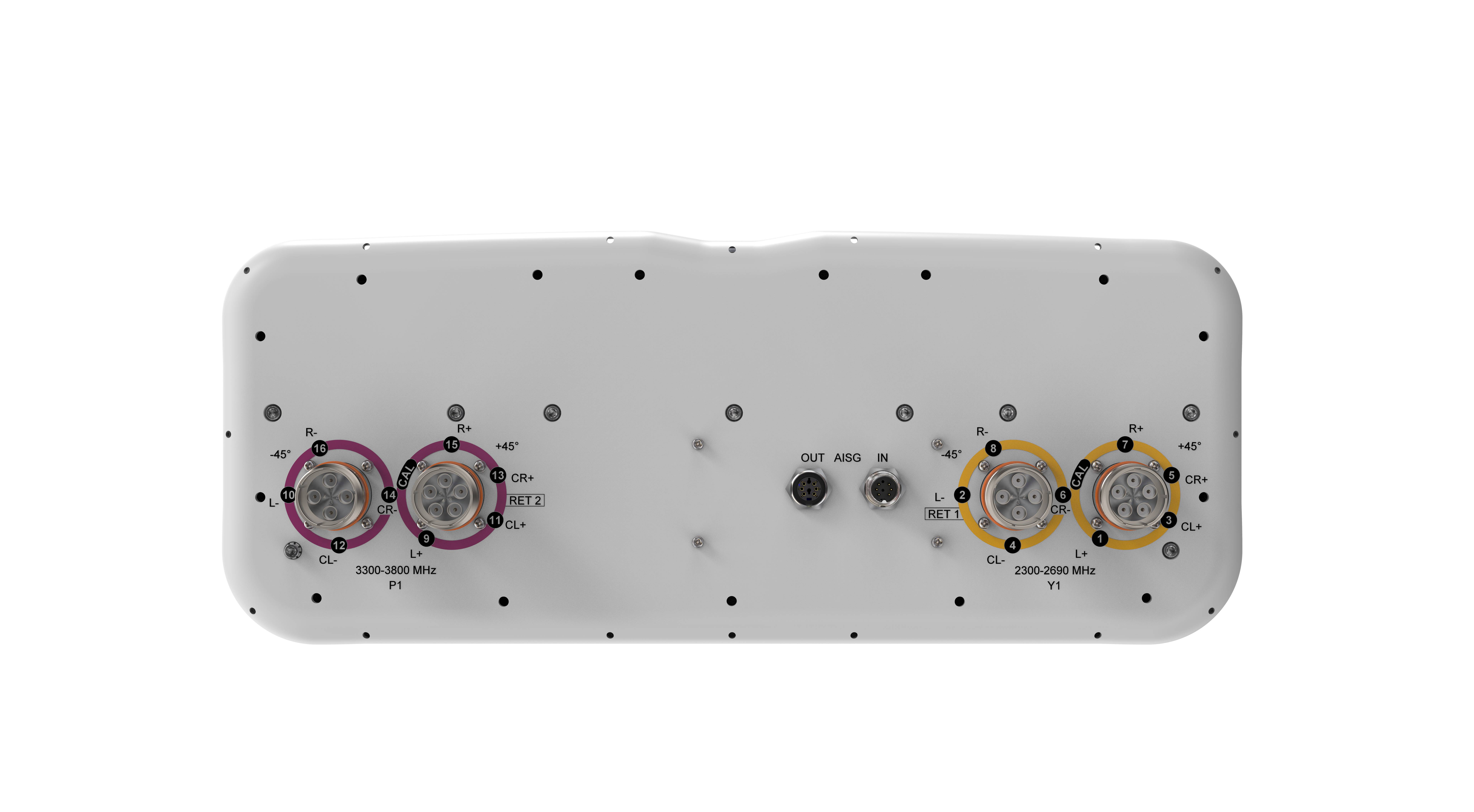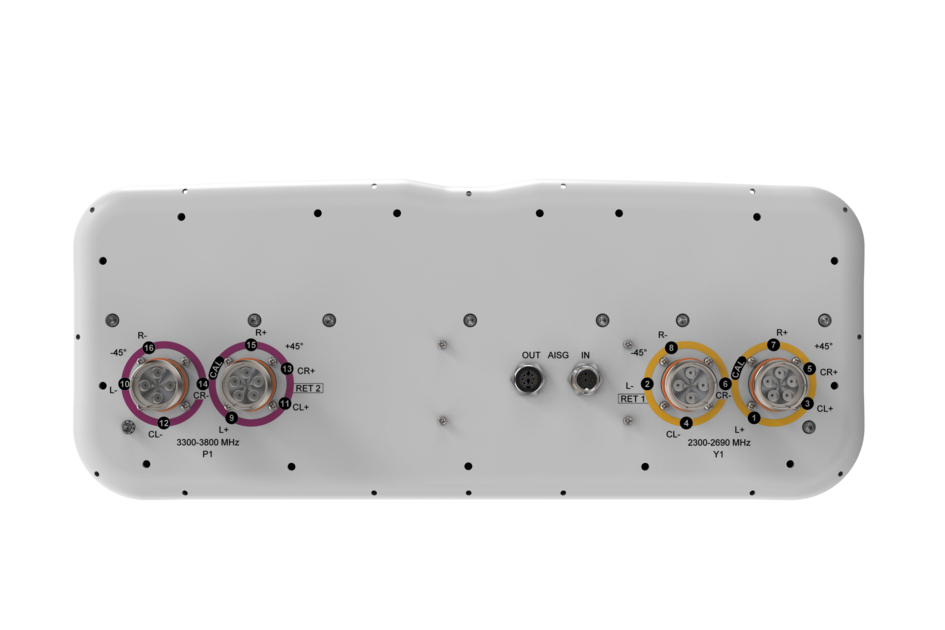 16-port Planar Array Antenna, 8x 2300–2690 and 8x 3300-3800MHz, 90° HPBW, 2x RET