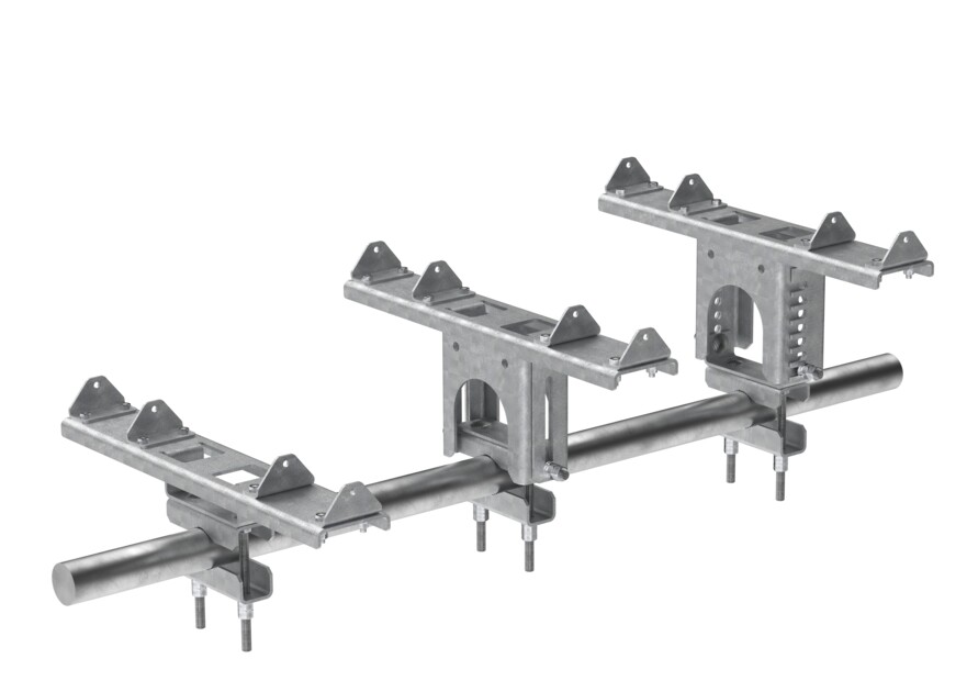Side-By-Side Mounting Kit to mount two 498mm (19.6inch) or 498mm (19.6inch) with 457mm (18inch) platform antennas on a pipe with 60 – 115 mm (2.375 - 4.5 inch) diameter Ensures consistent distance of 2.4 inches/