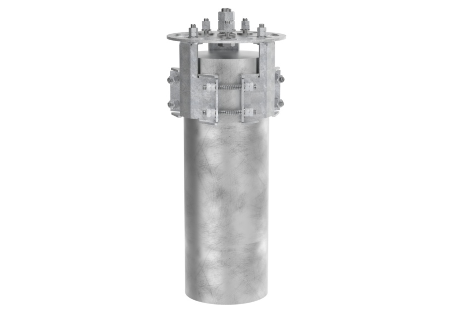 Heavyweight Small Cell mounting kit with shroud. Capability of mounting 2.0m (6.56ft) long canister antennas with 305mm (12”) diameter on the top of a pole.