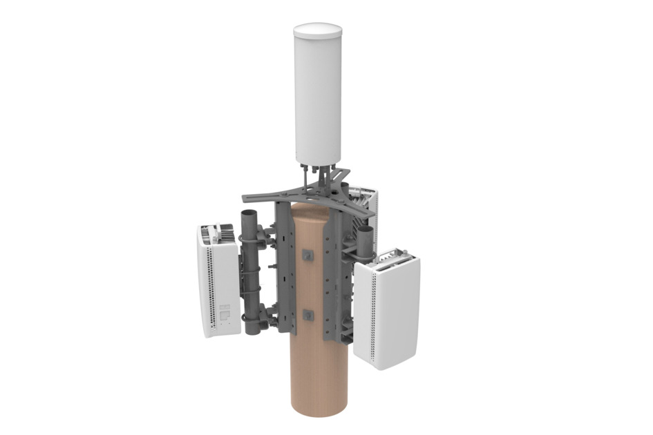Small Cell Wrap Around - Antenna Pole Top Mount plus Trisector pipe mounts for 5G Radios (for Poles 7in to 11in OD)