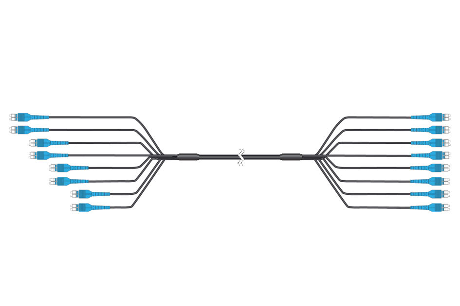 HELIAX® Bend Insensitive Singlemode Fiber DLC to DLC 16-Fiber Cable Assembly with pulling grip