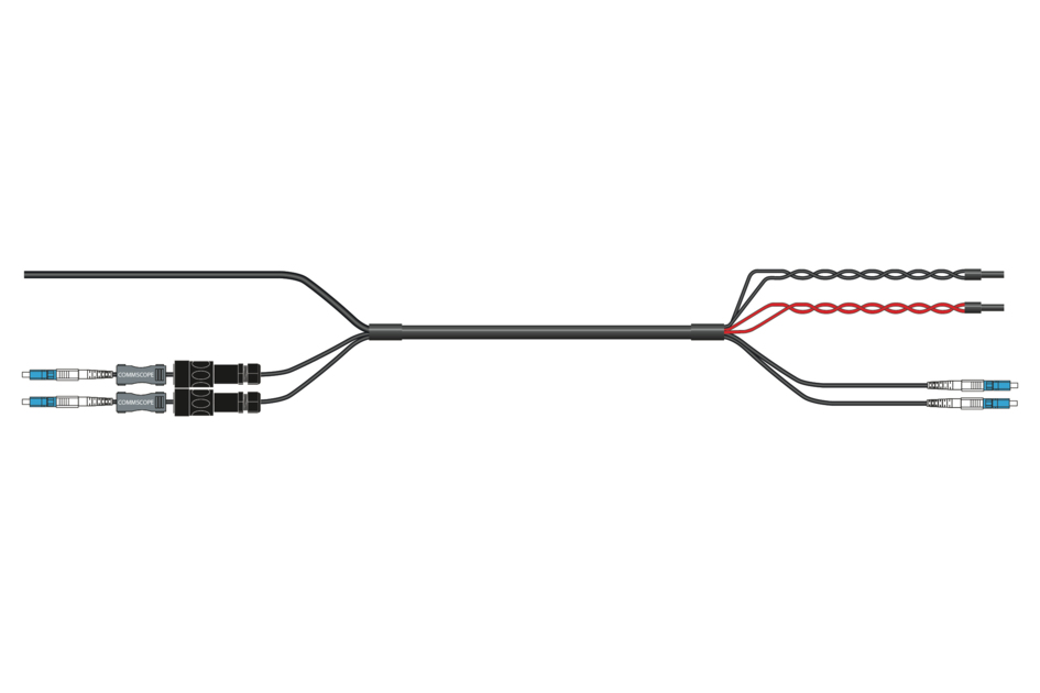 HELIAX® Hybrid Cable Assembly, 6-OVP box to RRU, Power Cord to RRU, UL Type TC-ER, 4 power conductors 8 AWG RRU, 10 AWG BBU, 2-fiber, Bi-Di, Jonhon Adapter Compatible, FullAXS, PVC jacket, aluminum armor, OVP gland insert kit included