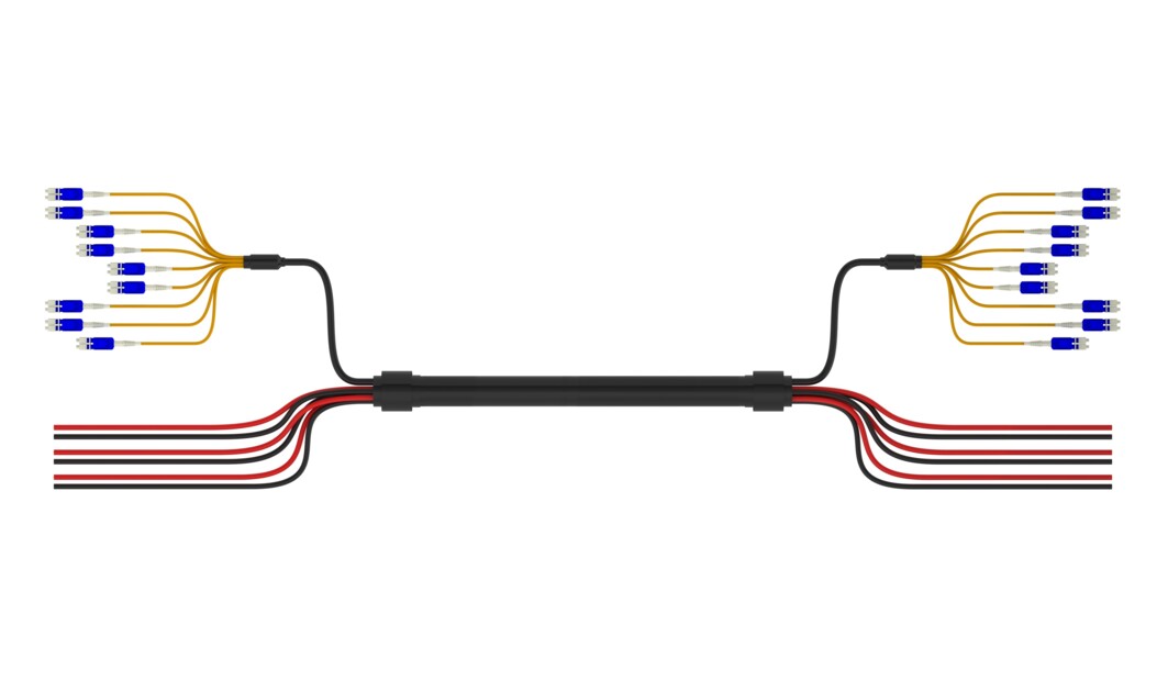 HELIAX® Hybrid Cable Assembly, 3x9, 6 X 4AWG 19-Strand Conductors, 18 SM Fiber, DLC-DLC, PVC jacket, Cu Foil Shield