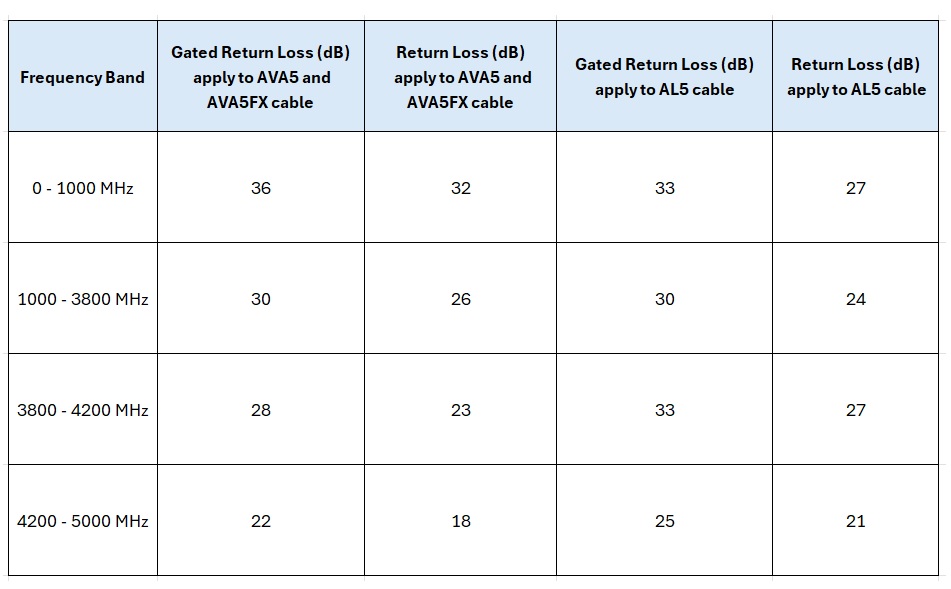 Return Loss Note Measurements taken using a .9 m (3 ft) jumper assembly