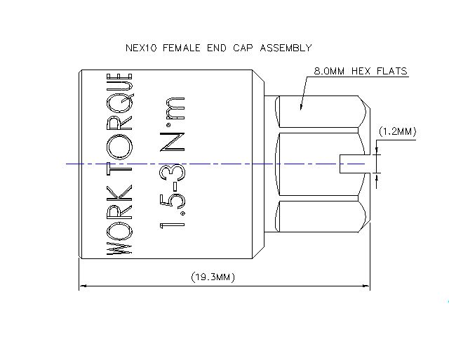 Female End Cap Assembly for Nex10 series, work torque 1.5-3N·M. (When mate with NEX10 Female Connector, use the straight Screwdriver tool and Diemnsion is : 1.2X8.0MM)