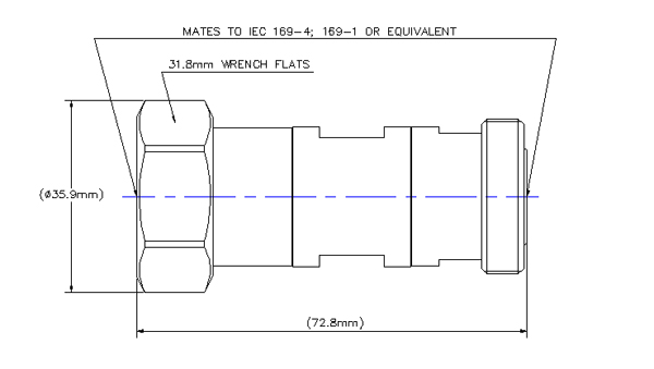 Dual Band dc Block, 650–2700 MHz, with interface types DIN Female and DIN Male