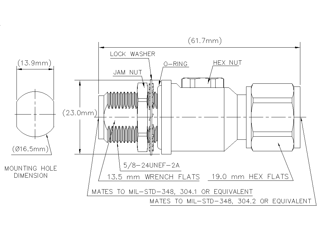 Coupling Nut Retention Force 444.822 N | 100 lbf