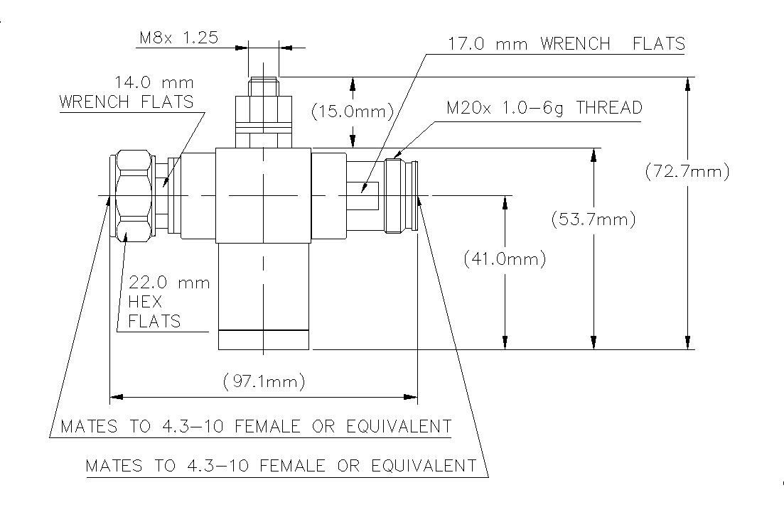 Arrestor Plus® Quarterwave Surge Arrestor 695-2700MHz, with interface types 4.3-10 Female and 4.3-10 Male
