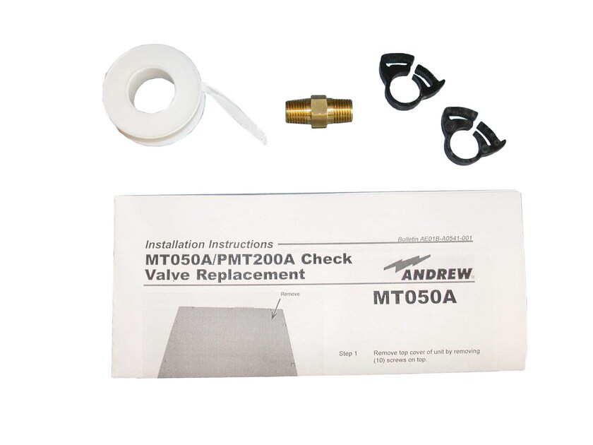 | Included | 1/4 in polyethylene tubing | Check valve replacement | Instruction sheet | Nylon hose clamp | PTFE tape |
