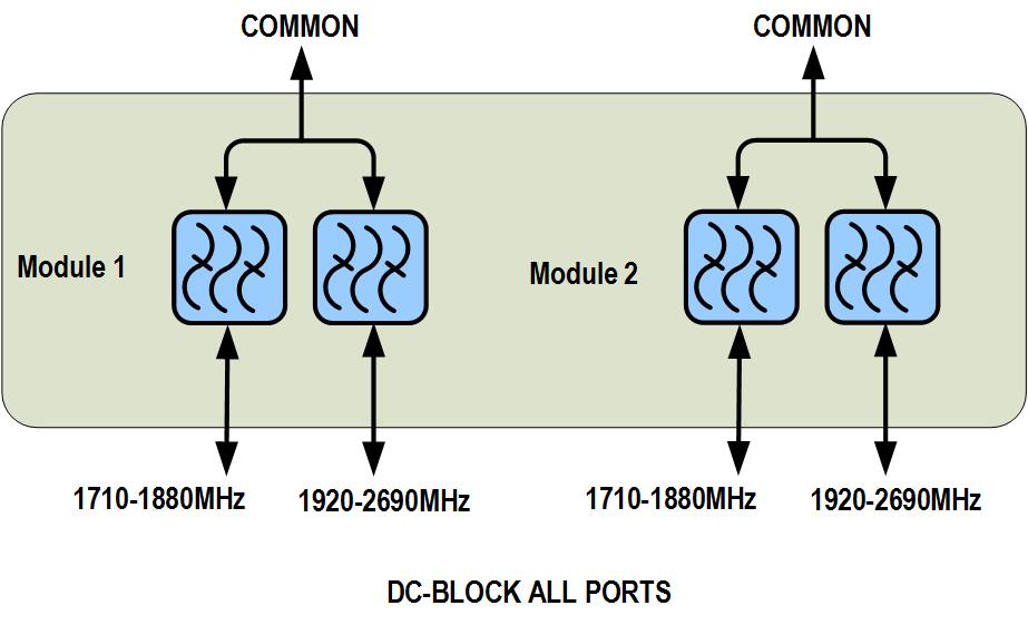 dc/AISG Pass-through, demultiplexer dc/AISG blocking on all ports
