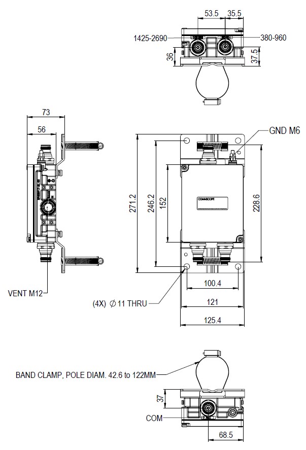 Diplexer, 380–960 MHz/1425–2690 MHz, dc pass all, with 4.3-10 connectors