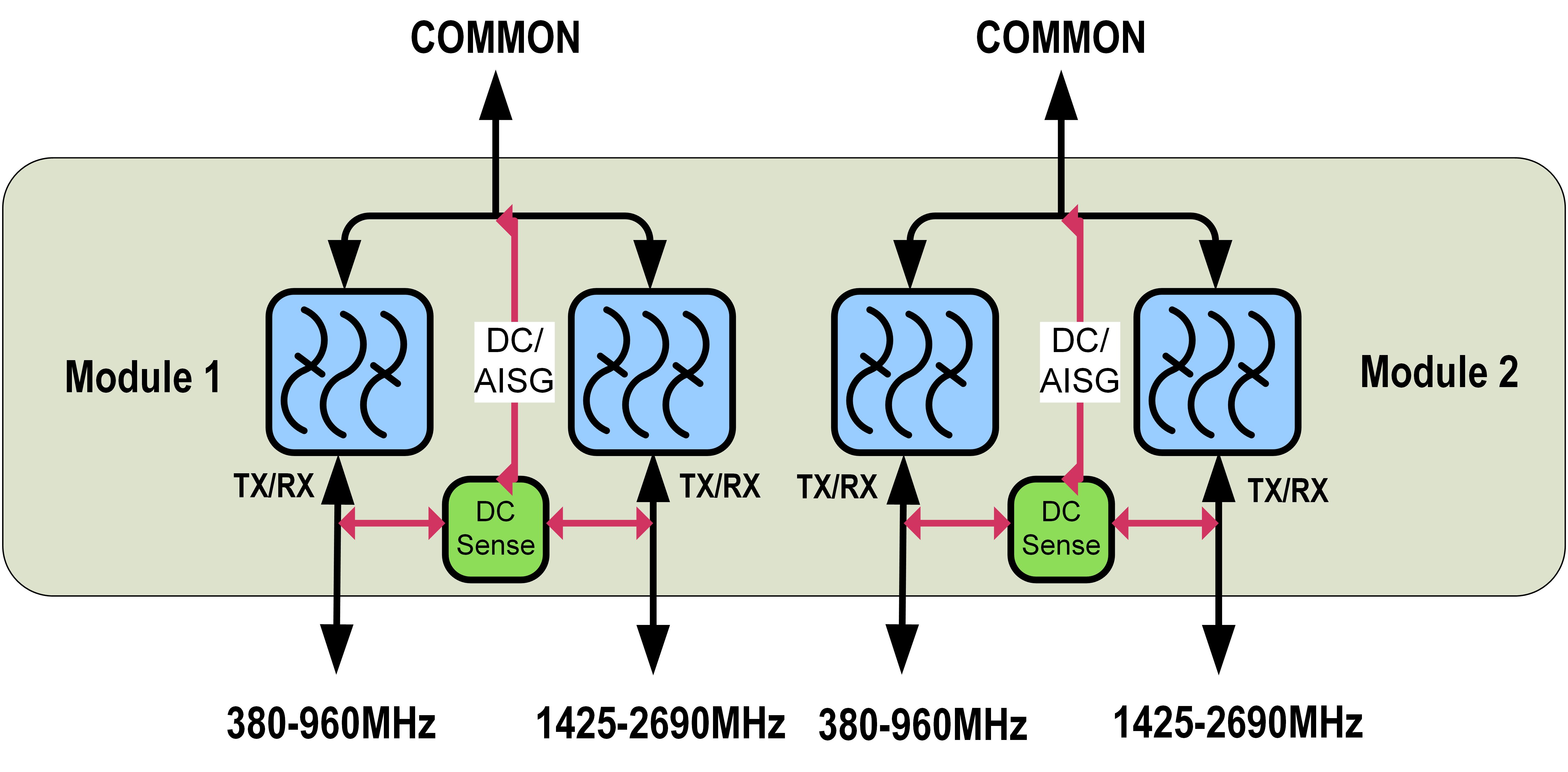 dc/AISG Pass-through Path Auto sensing circuitry detects dc/AISG signal presence and selects path