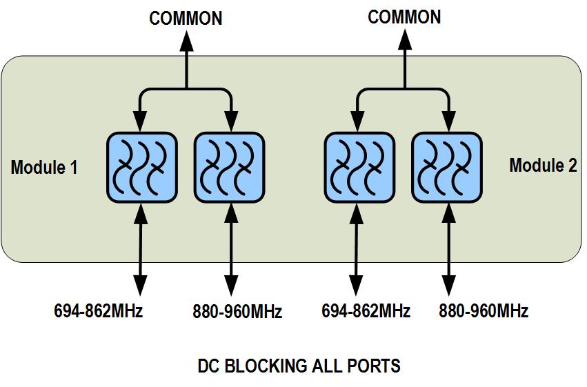 dc/AISG Pass-through, demultiplexer dc/AISG blocking on all ports