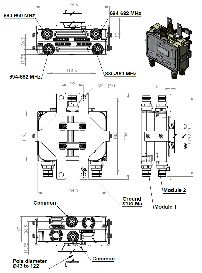 Ultra Compact Twin Diplexer 700-800/900, 4.3-10 connectors.