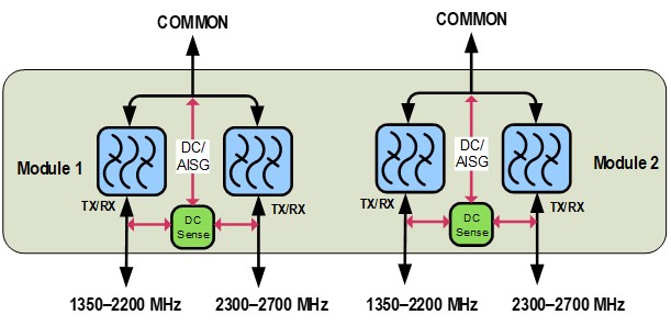 dc/AISG Pass-through, combiner Autosensing