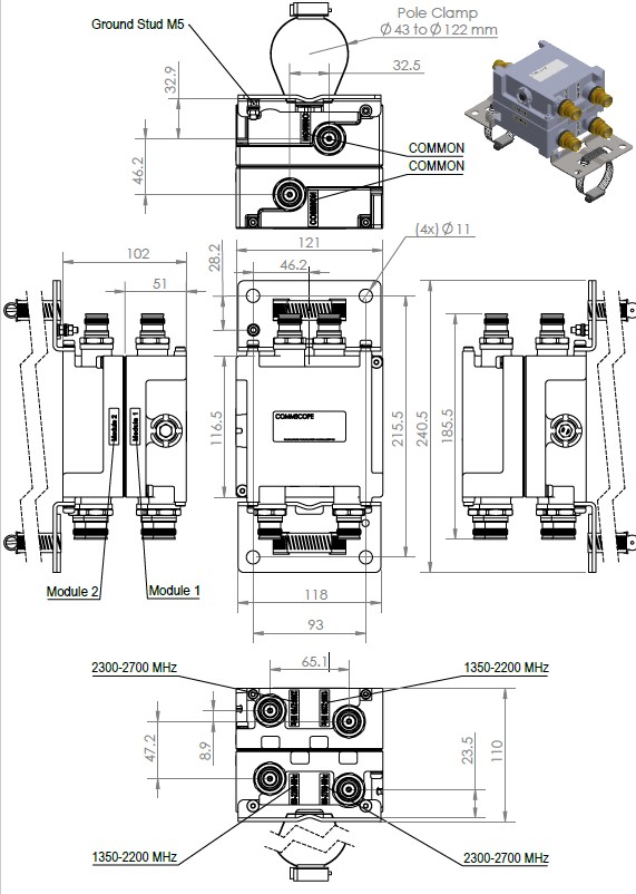 Mounting Pipe Diameter Range 43–122 mm