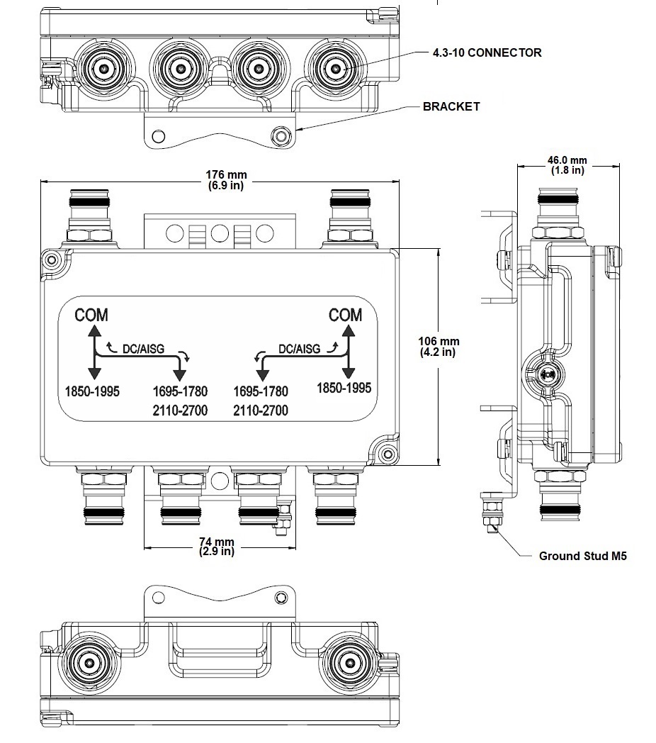 - DC/AISG pass on 1695-1780/2110-2700 MHz