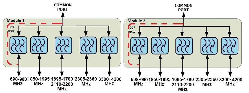 - dc/AISG pass-through on low frequency ports