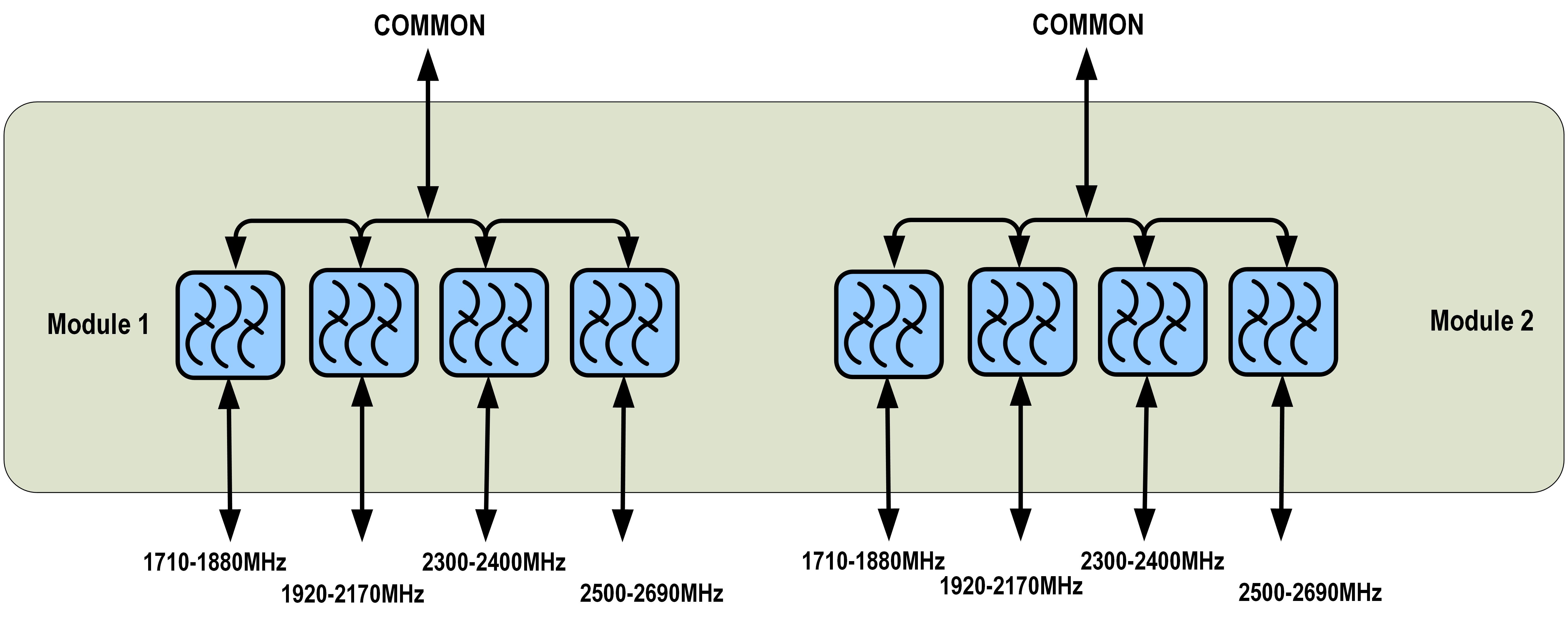 | Port Designation | PORT 1 1710-1880MHz | PORT 2 1920-2170MHz | PORT 3 2300-2400MHz | PORT 4 2500-2690MHz |